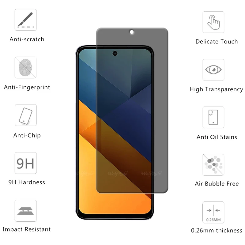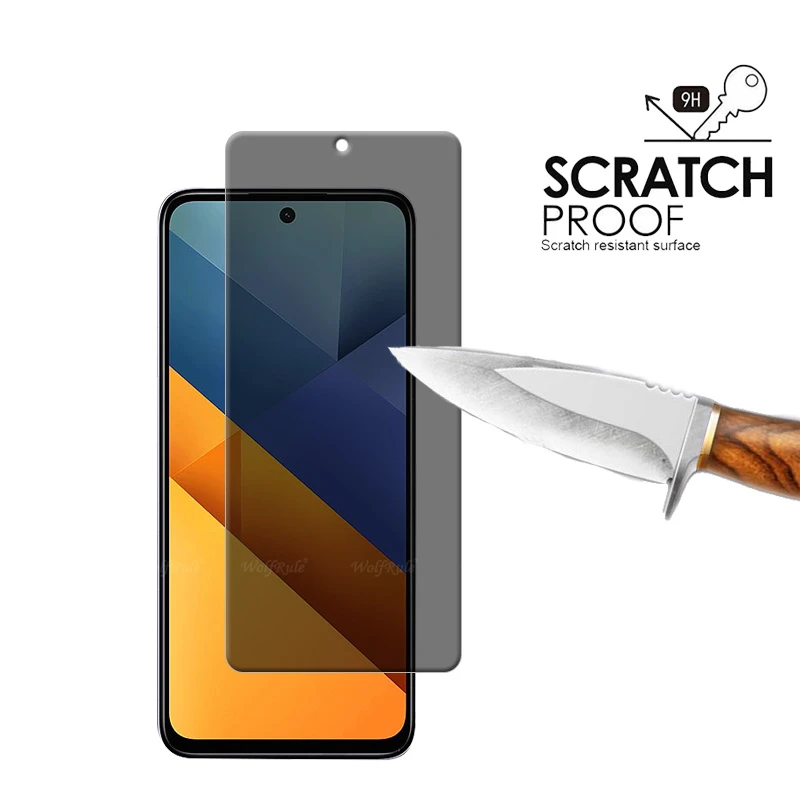 Comprar 4 Uds para Poco M6 vidrio Xiaomi Poco M6 PocoM6 vidrio templado 9H HD privacidad cubierta antiespía pegamento para Protector de pantalla Poco M6 6,79"