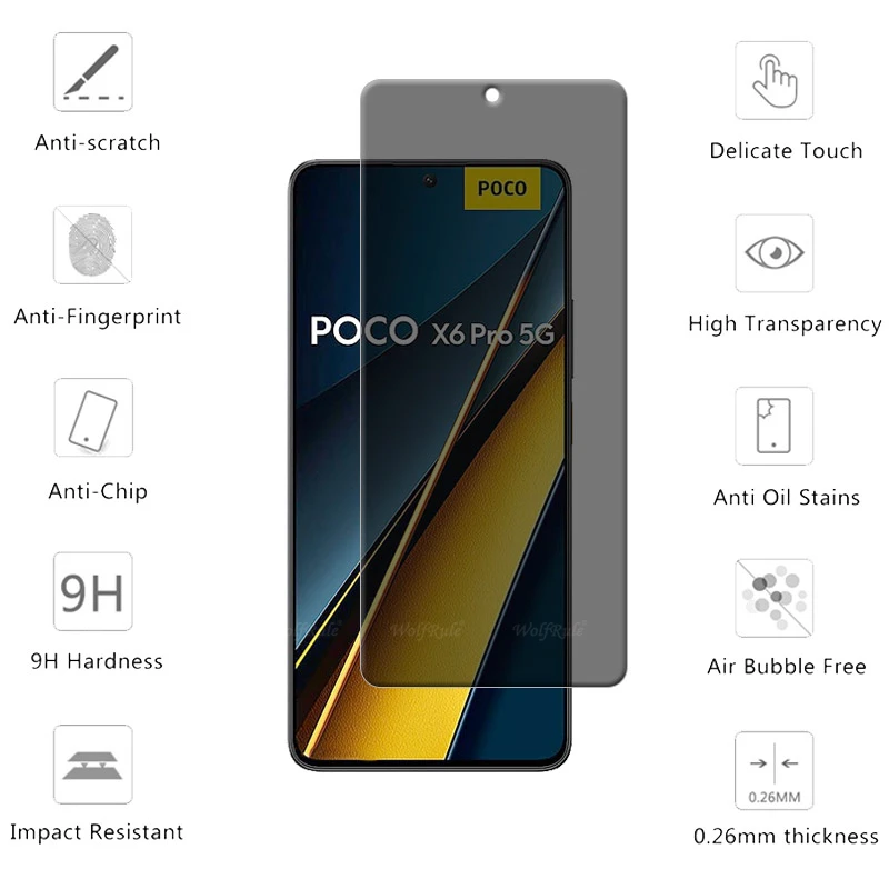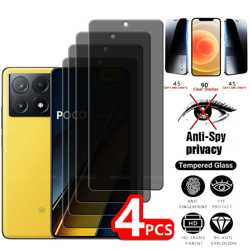 Comprar 4 Uds para Poco X6 Pro vidrio Xiaomi Poco X6 Pro vidrio templado 9H cubierta antiespía pegamento Protector de pantalla de privacidad Poco X6 Pro 6,67"