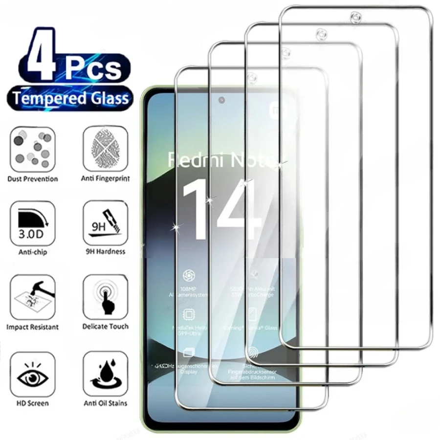 Comprar 4 Uds Protector de pantalla de vidrio templado para Xiaomi Redmi Note 14 5G 14S 13 12 11 10 9 8 Pro Plus 12S 12 Turbo 11S 10T 9S película transparente