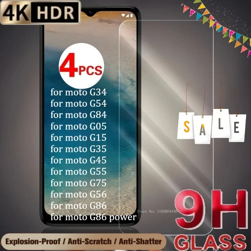 4 Uds protectores de pantalla para Motorola G34 G54 G84 G56 vidrio templado antiarañazos para Motorola G86 Power G05 G15 G35 G45 G55 G75 - imagen 1