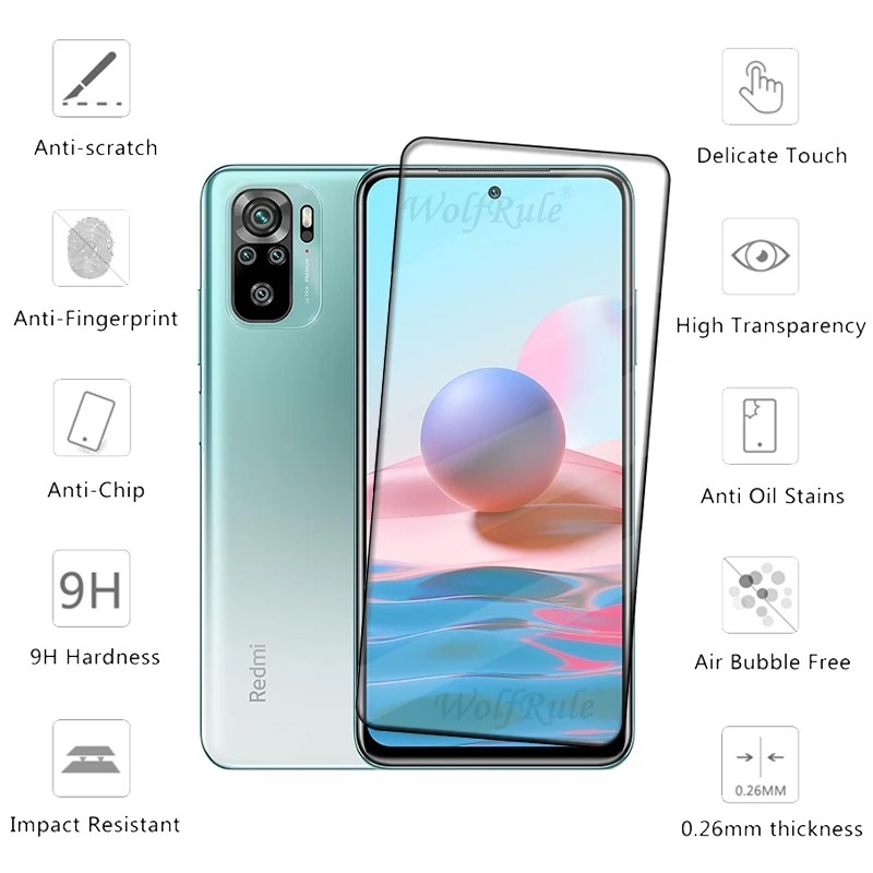 Comprar 4 Uds para Redmi Note 10 vidrio Xiaomi Redmi Note 10 Protector de vidrio templado 9H cubierta completa pegamento Protector de pantalla Redmi Note 10 4G