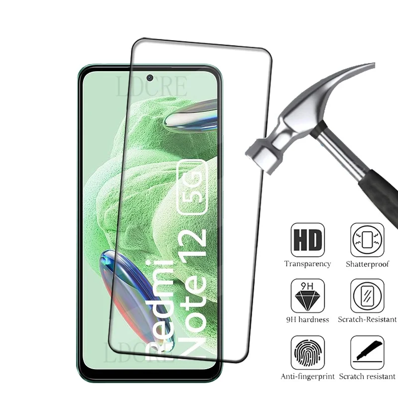 Comprar 4 Uds para Redmi Note 12 5G vidrio Redmi Note 12 vidrio templado 9H HD pegamento de cubierta completa para Protector de pantalla Xiaomi Redmi Note 12 5G