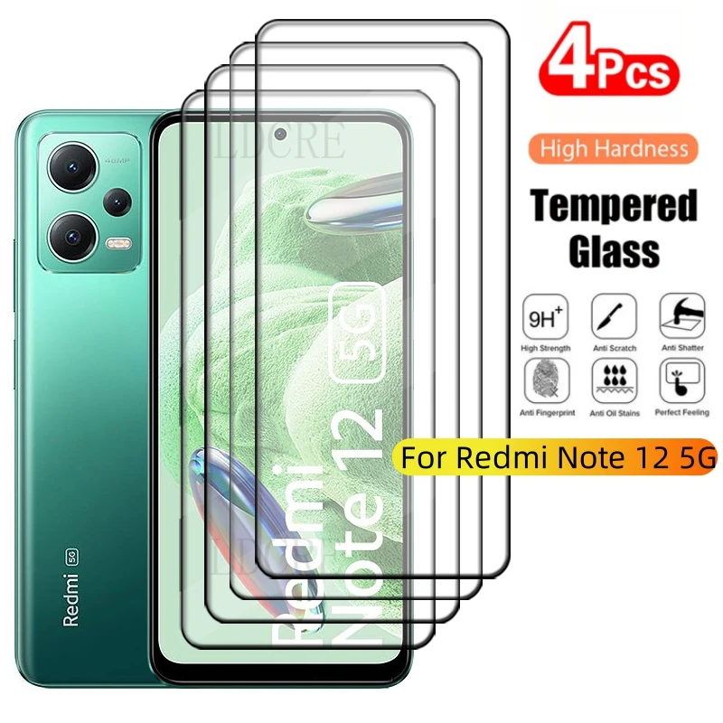 Comprar 4 Uds para Redmi Note 12 5G vidrio Redmi Note 12 vidrio templado 9H HD pegamento de cubierta completa para Protector de pantalla Xiaomi Redmi Note 12 5G