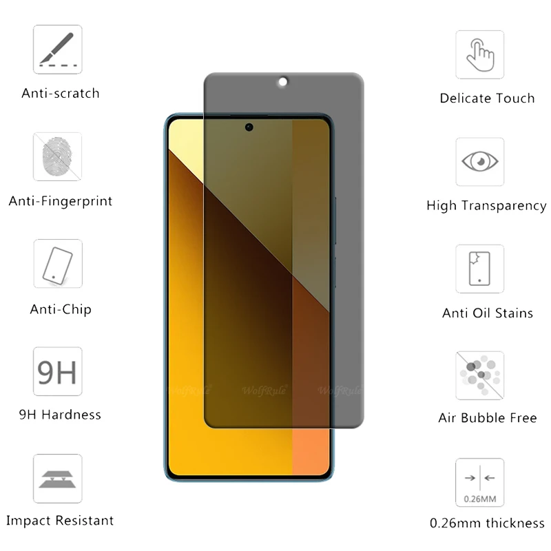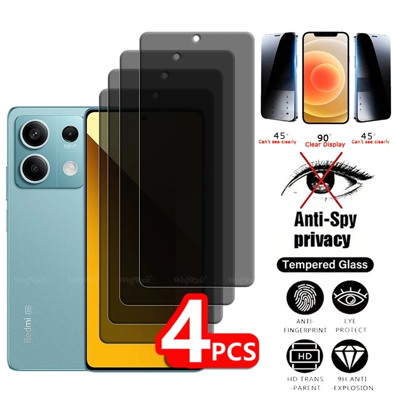 Comprar 4 Uds para Redmi Note 13 5G vidrio Redmi Note 13 5G vidrio templado 9H pegamento antiespía Protector de pantalla de privacidad Redmi Note 13 5G 6,67"