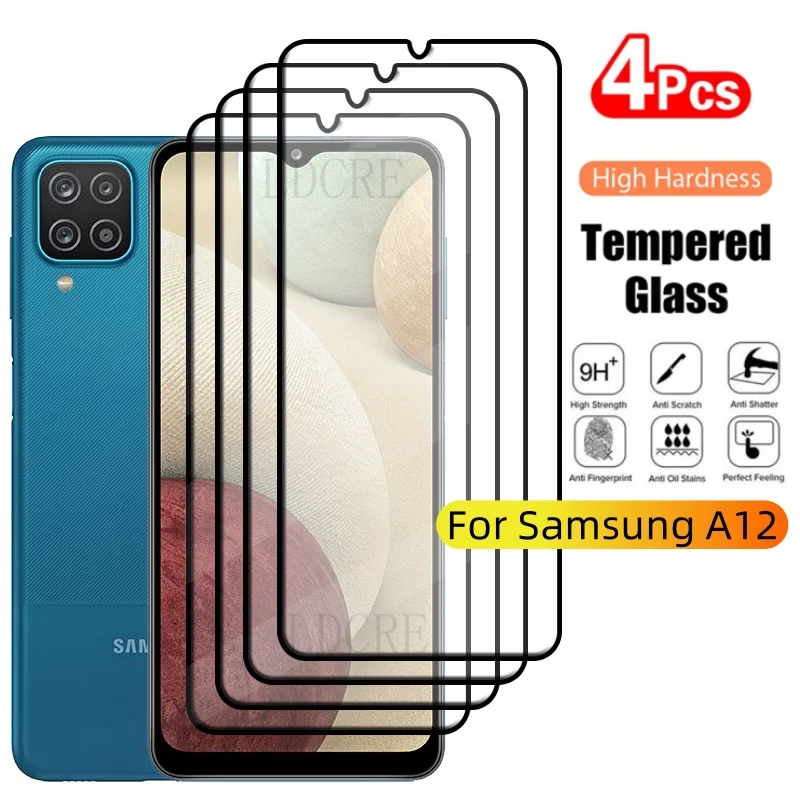 Comprar 4 Uds para Samsung A12 vidrio Samsung Galaxy A12 vidrio templado 9H cubierta protectora completa pegamento para Protector de pantalla Samsung A12 A 12