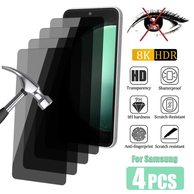 Comprar 4 Uds vidrio antiespía para Samsung S21 S20 FE 5G A73 A53 A33 A23 5G Protector de pantalla de privacidad para Samsung A72 A52 A32 A70 A50 A40