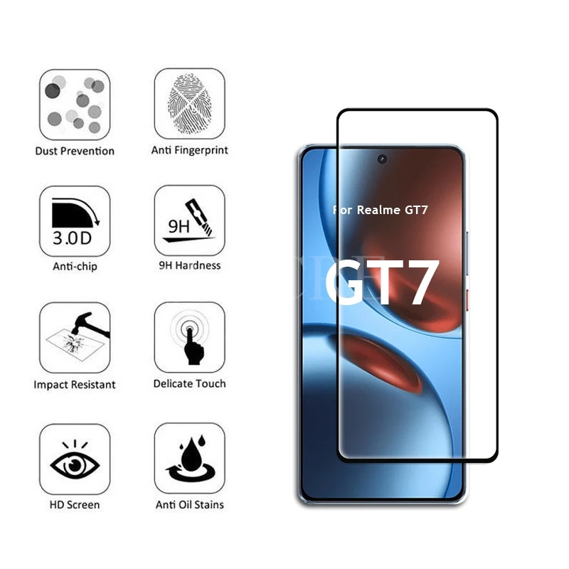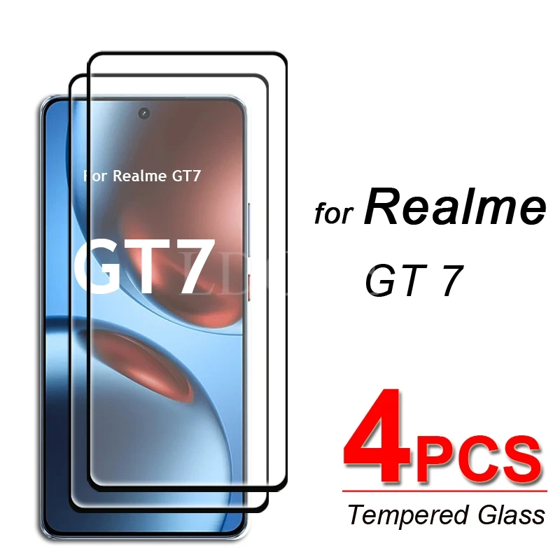 Comprar 4 Uds vidrio para Realme GT 7 vidrio Realme GT 7 película templada HD pegamento completo Protector de pantalla película Realme GT 7 vidrio templado