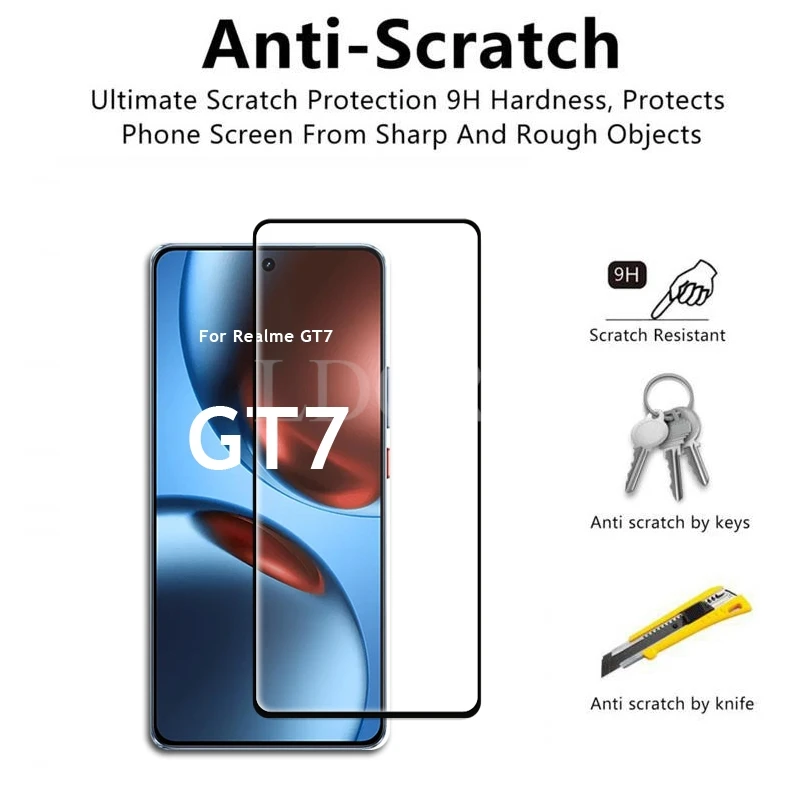 Comprar 4 Uds vidrio para Realme GT 7 vidrio Realme GT 7 película templada HD pegamento completo Protector de pantalla película Realme GT 7 vidrio templado