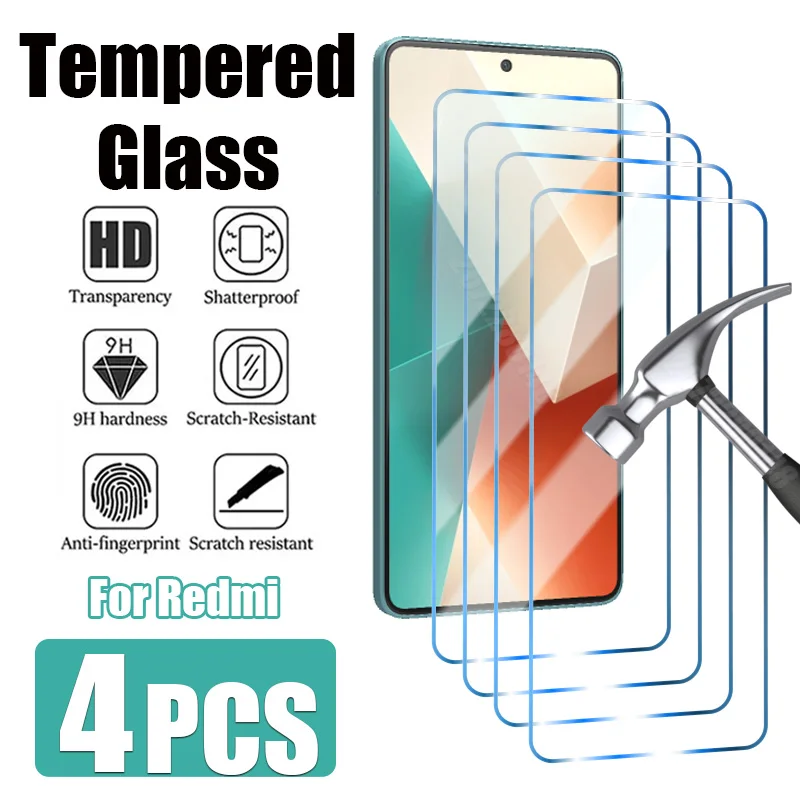 Comprar 4 Uds vidrio templado para Redmi Note 13 12 11 10 9 8 Pro Plus 5G Sceeen Protector para Redmi 12C 10C 9C 9A 9AT Note 11S 10S 9T 9S