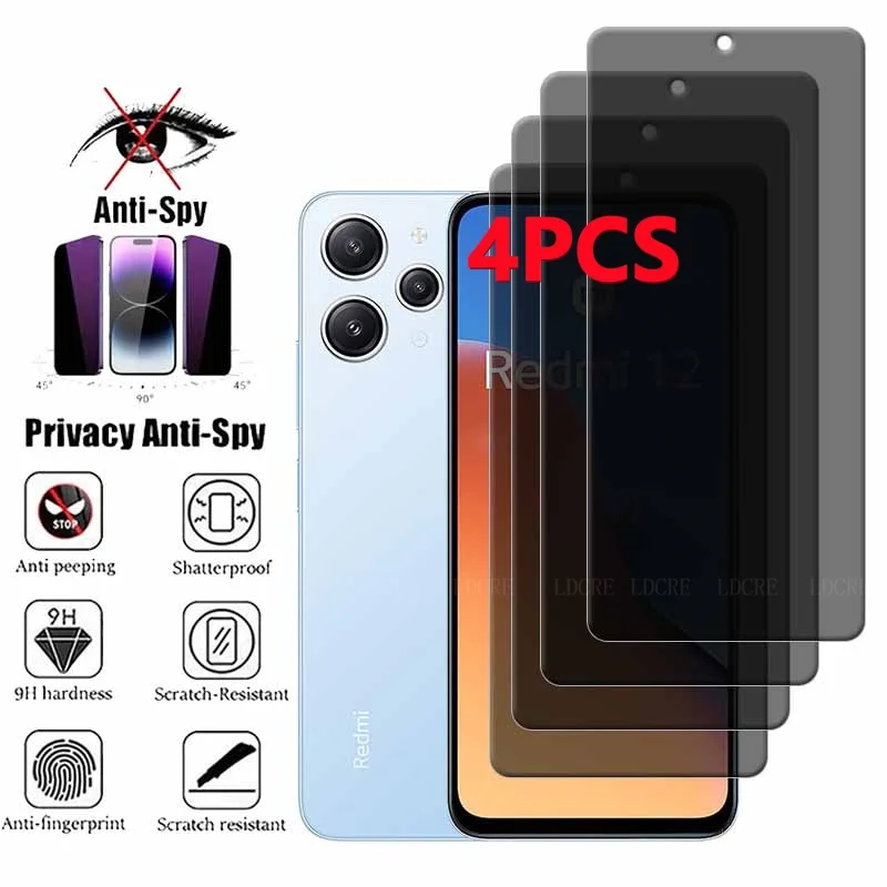 Comprar 4 Uds para Xiaomi Redmi 12 vidrio para Redmi 12 Protector de pantalla 9H protección antiespía privacidad vidrio templado Redmi 12 Redmi12 4G