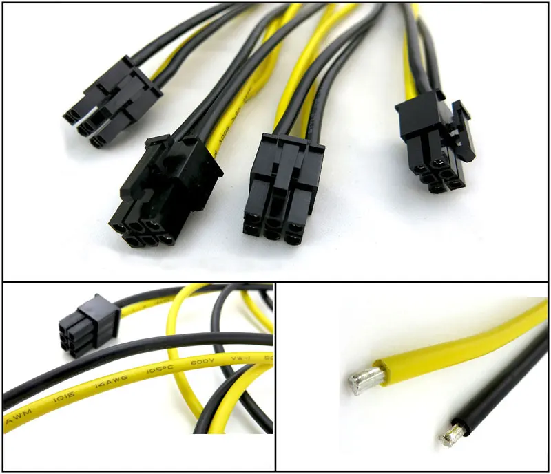 Cable de fuente de alimentación PCI-E UL1015 14AWG de 6 pines para fuente de alimentación B PCI-E GPU Antminer S1 S3 S5 S7.