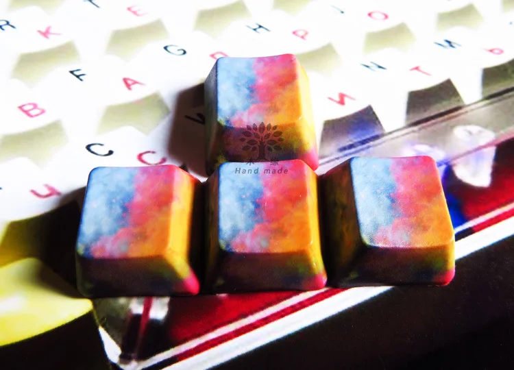4 unids/set Van Gogh Color Dye Sublimación Key Cap Engrosado PBT Teclado mecánico Keycap Dirección Key WASD F Área Keycaps OEM