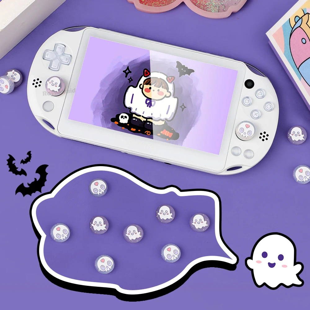❤️ NUEVO Tema Fantasma dDiseños, patrones lindos y amigables para las tapas de joystick PS VITA 1000 2000.