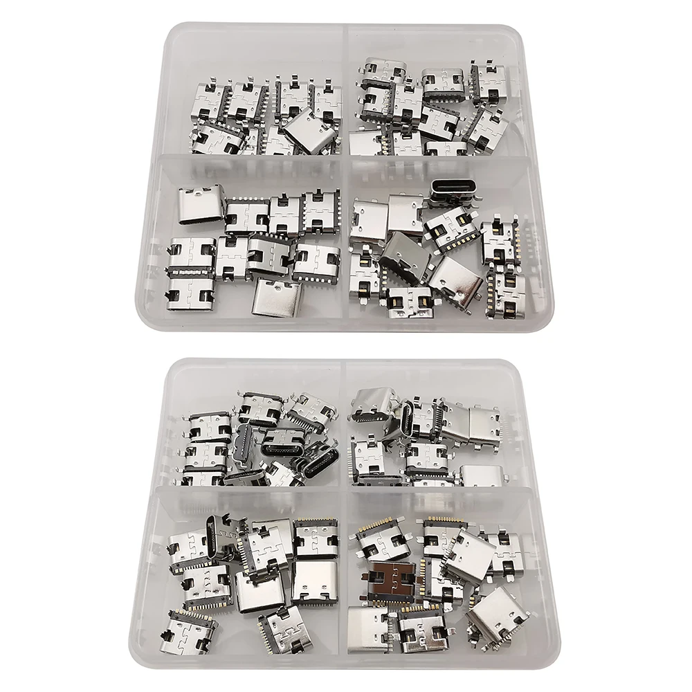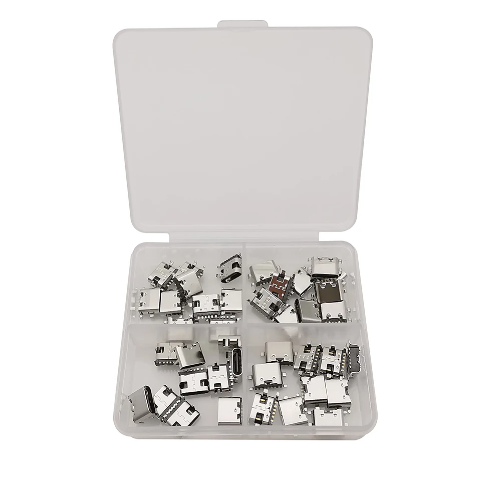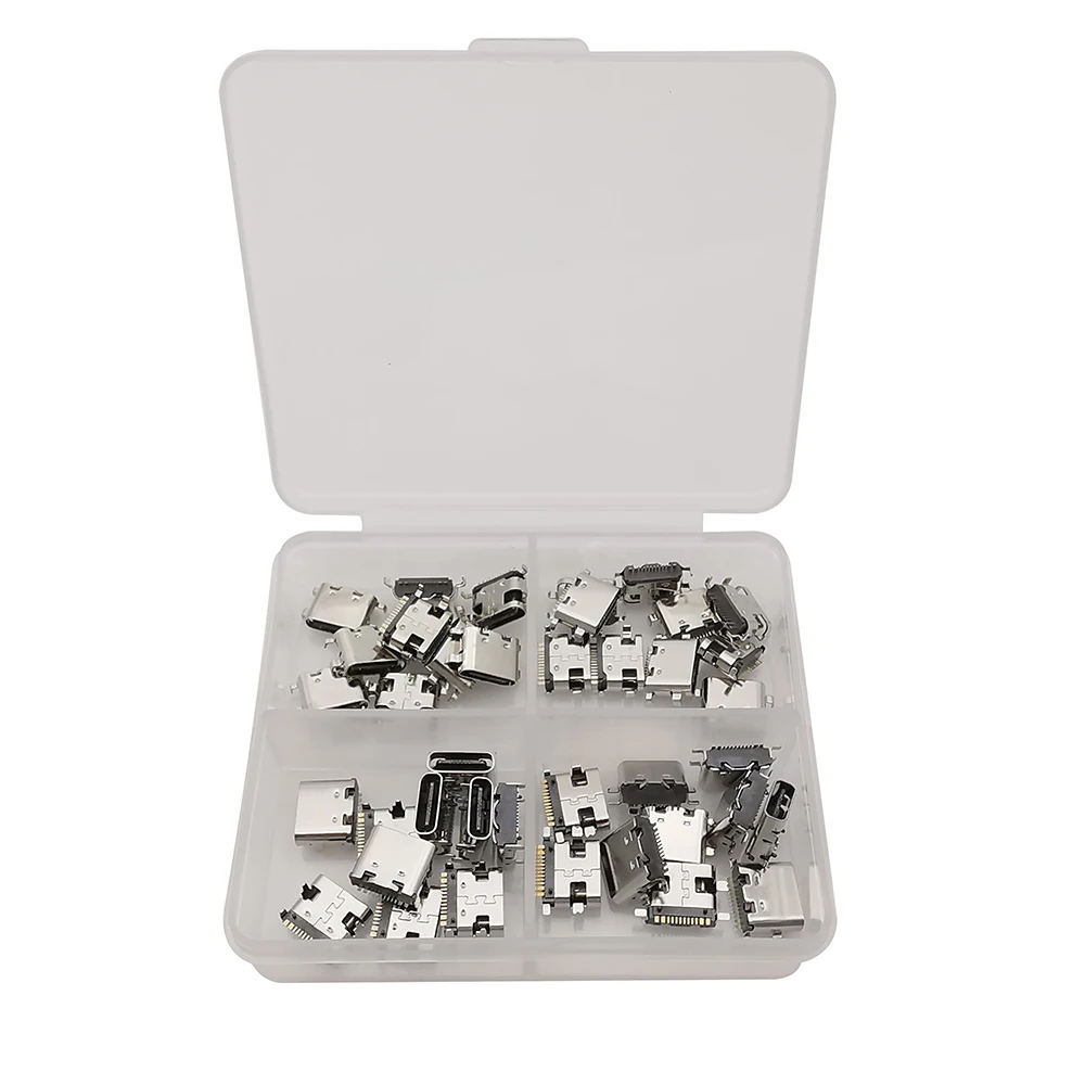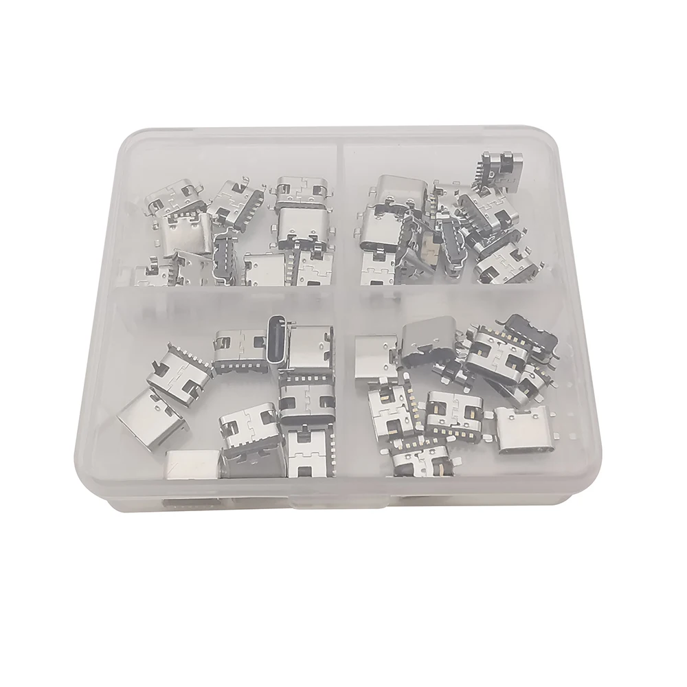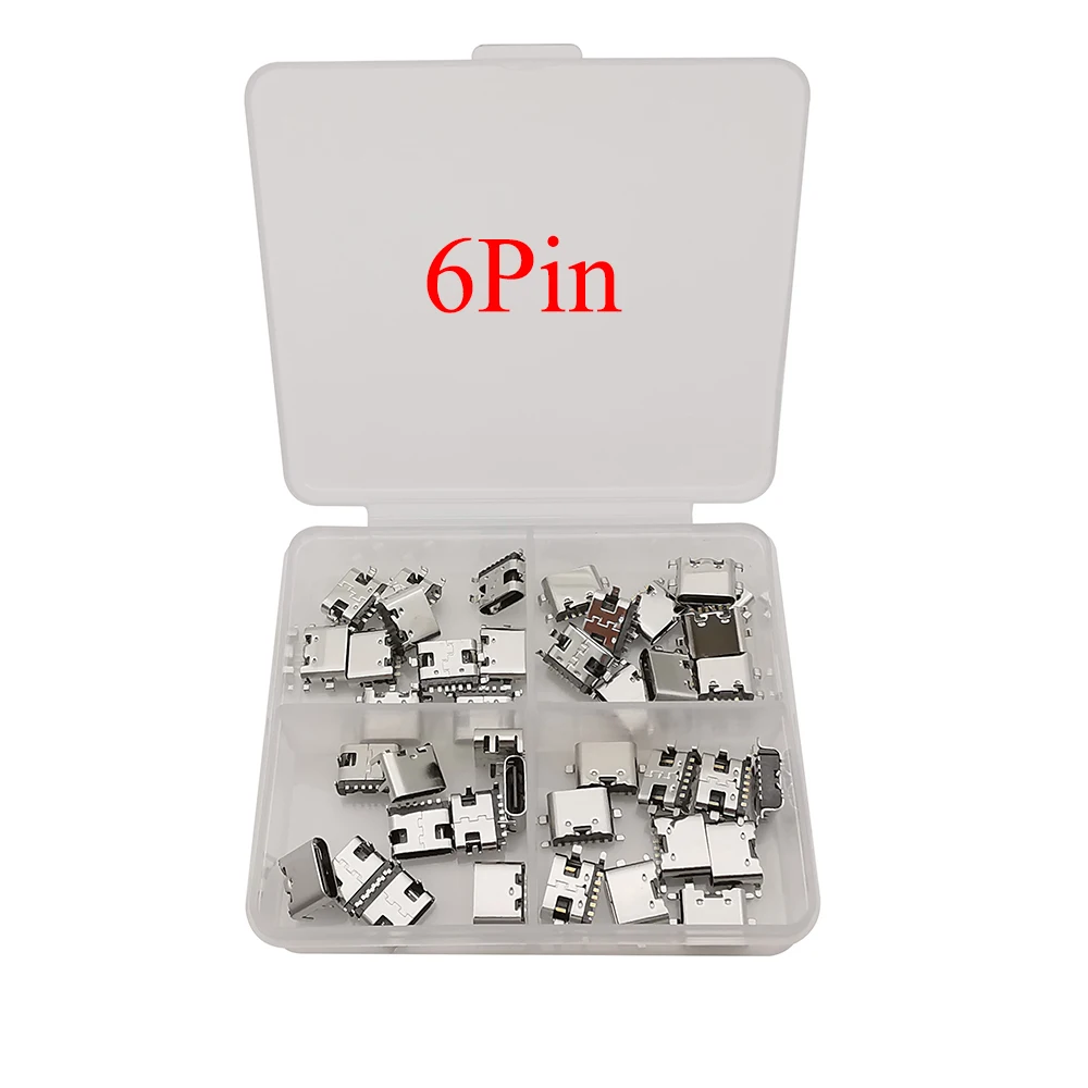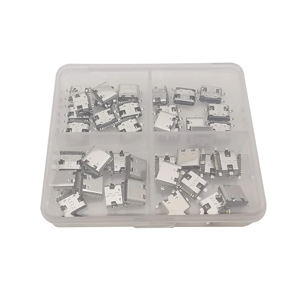 40 Uds USB tipo C hembra 6 pines 16 pines conector de carga colocación SMD DIP tipo C Jack para reparación de PCB DIY