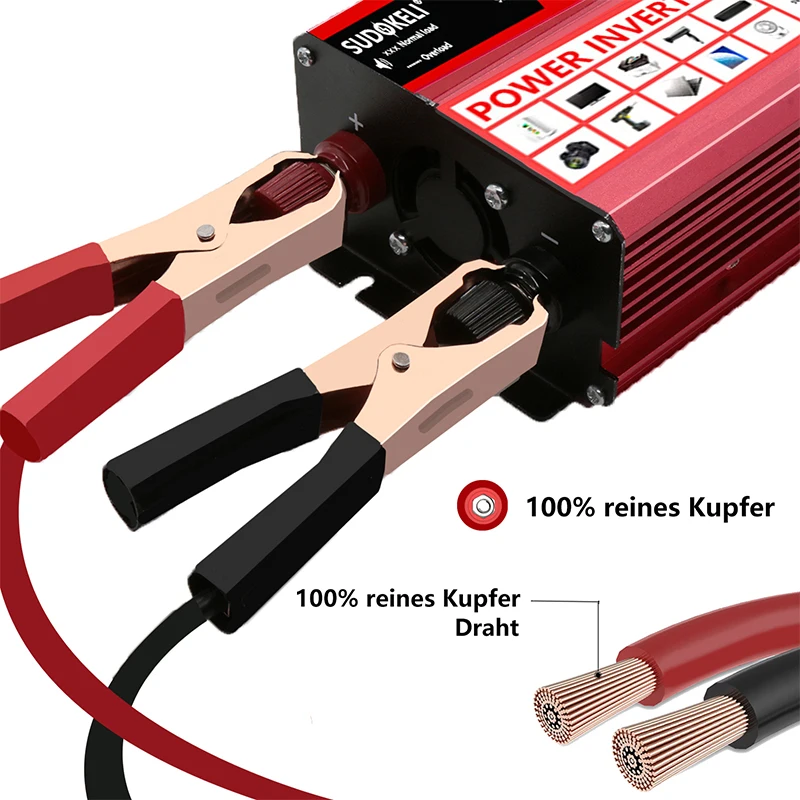 • Amplio rango de voltaje de entrada:El inversor puede aceptar corriente continua de 12 a 15V, haciéndolo compatible con una amplia gama de dispositivos.