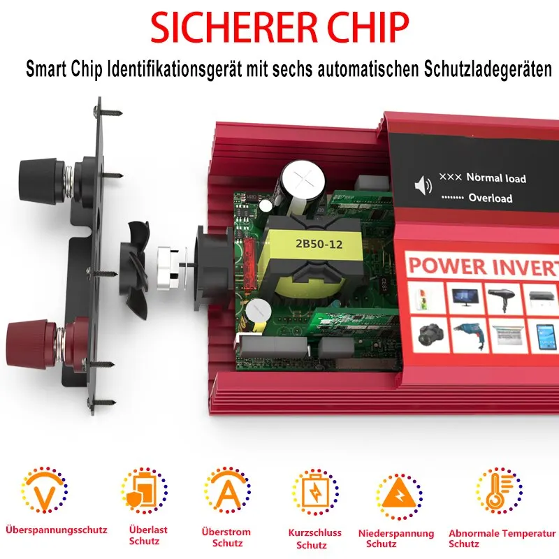 • Amplio rango de voltaje de entrada:El inversor puede aceptar corriente continua de 12 a 15V, haciéndolo compatible con una amplia gama de dispositivos.