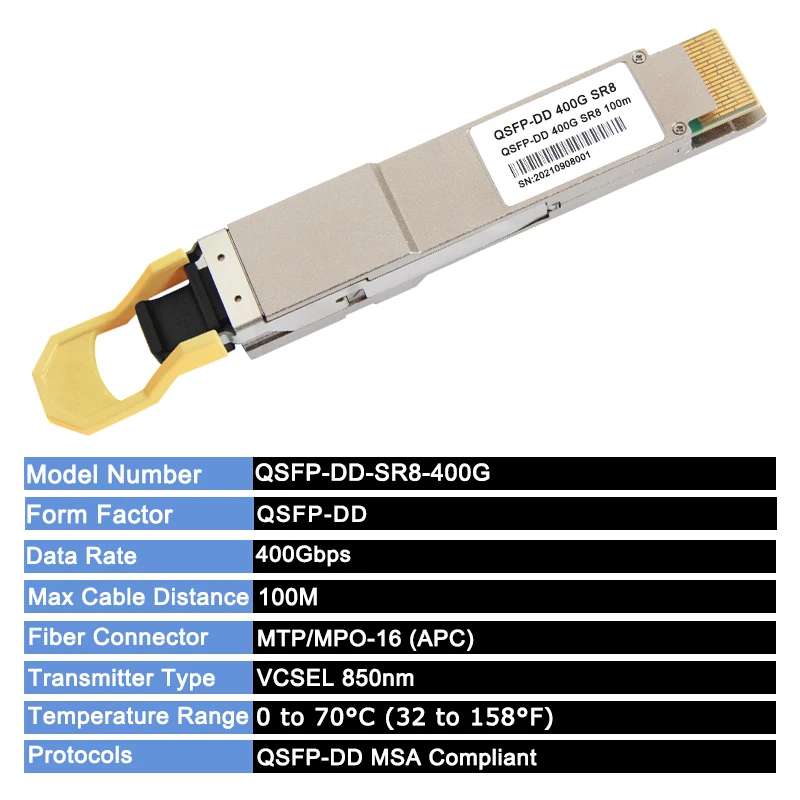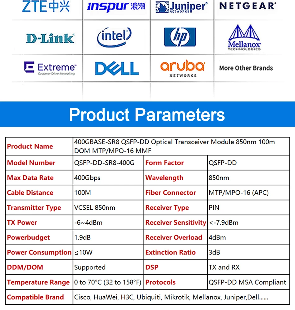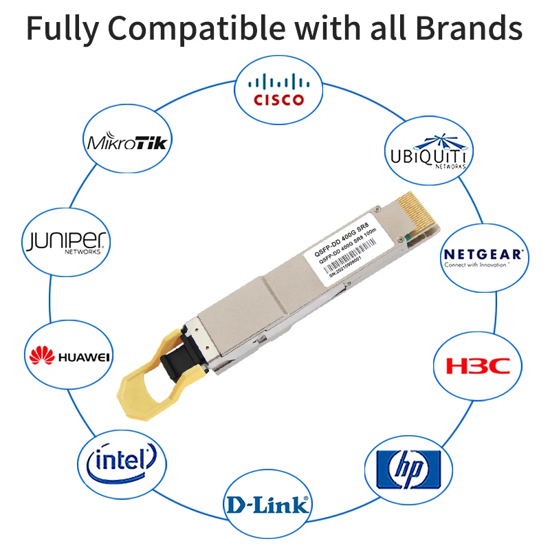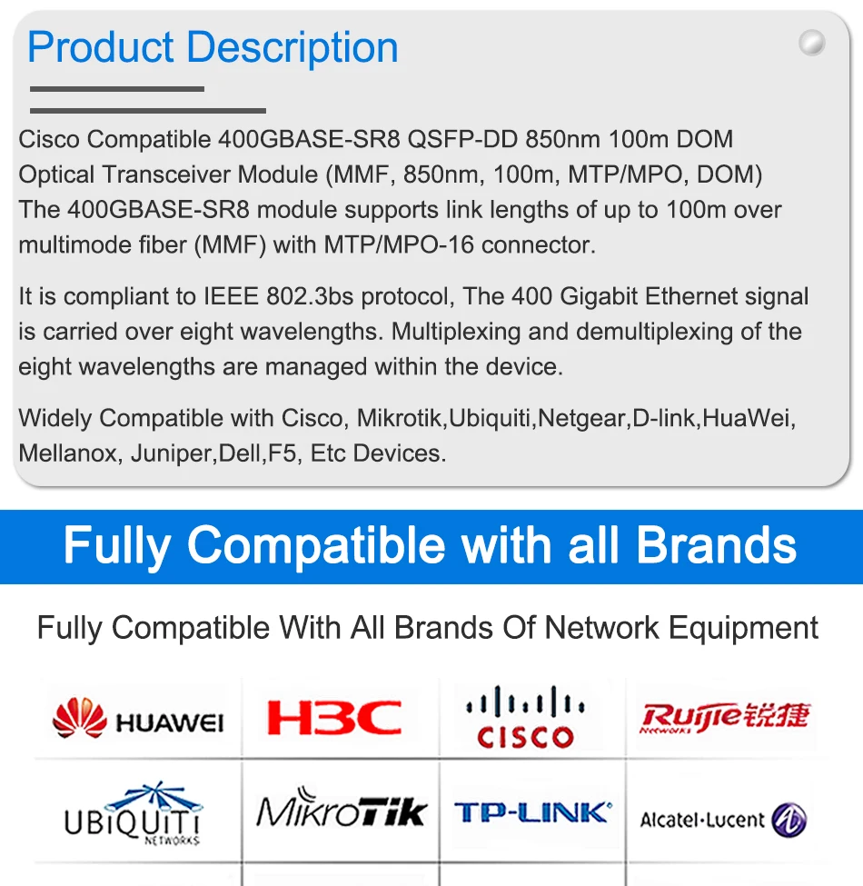 Módulo transceptor óptico Compatible con Cisco 400GBASE-SR8 QSFP-DD PAM4 850nm 100m DOM (MMF, 850nm, 100m, MTP/MPO, DOM)