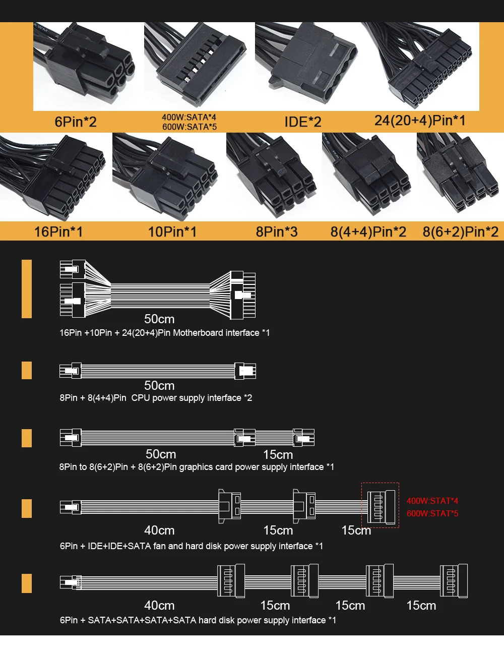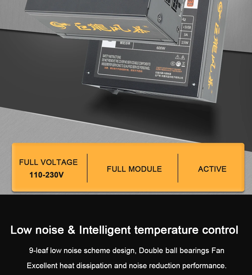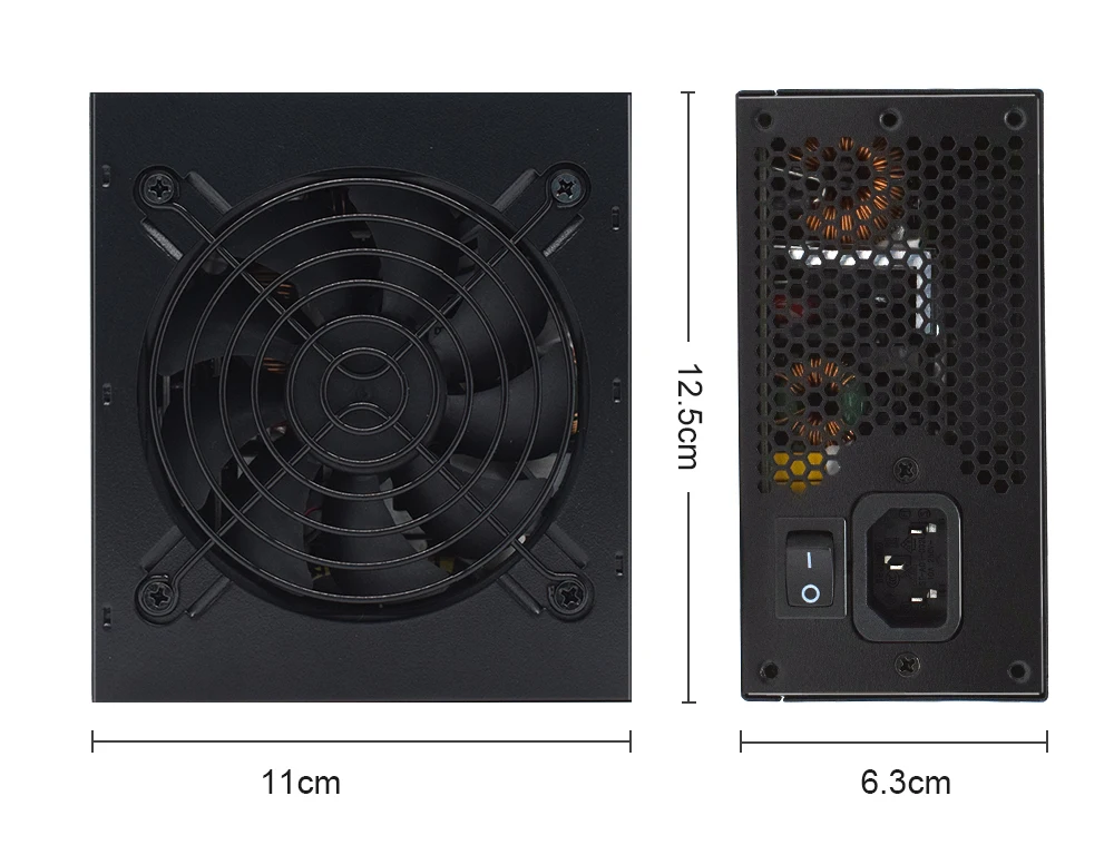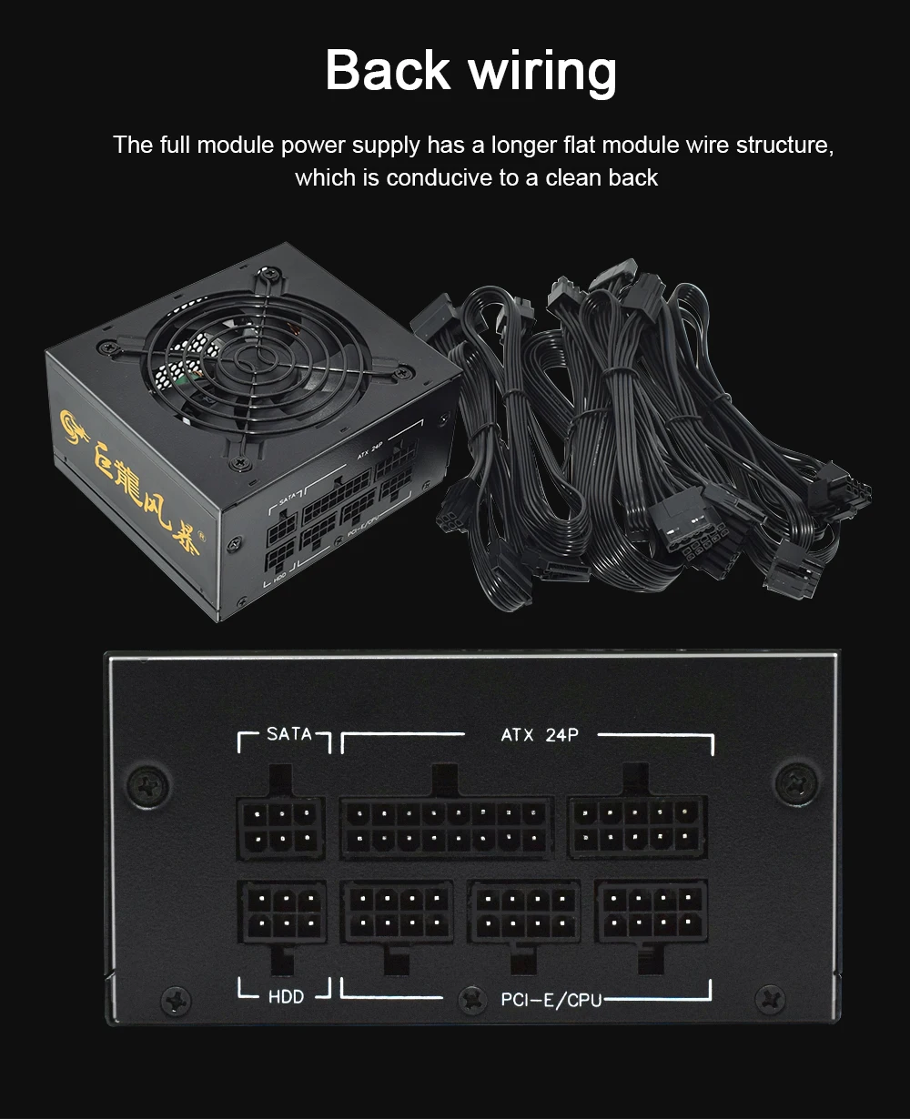 1. Totalmente modular, para que solo conecte los cables que su sistema necesita. Fácil de usar, y reduce el desorden y mejora el flujo de aire 2. Voltaje: 110-230V 3. Tamaño: 125*110*63mm Conector de 4,12 V para compatibilidad con tarjetas gráficas y placas base modernas. 5. El ventilador de refrigeración con cojinete hidráulico para mantener una buena disipación del calor.