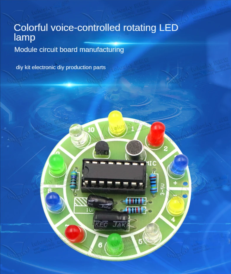 Comprar 4017 Colorful Voice-Activated Rotating LED Lamp Module Circuit Board Production Diy Kit Electronic Diy Production Parts