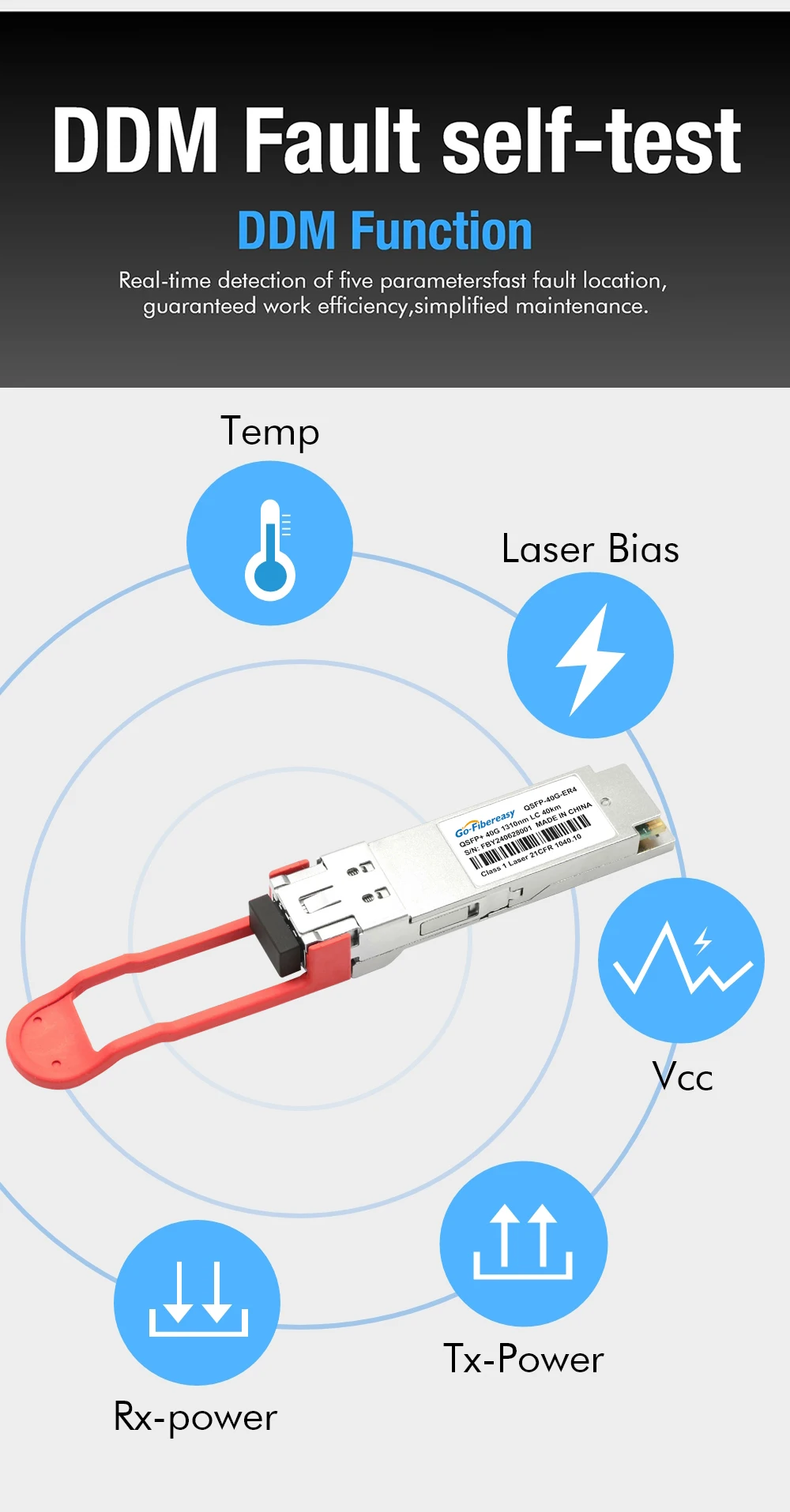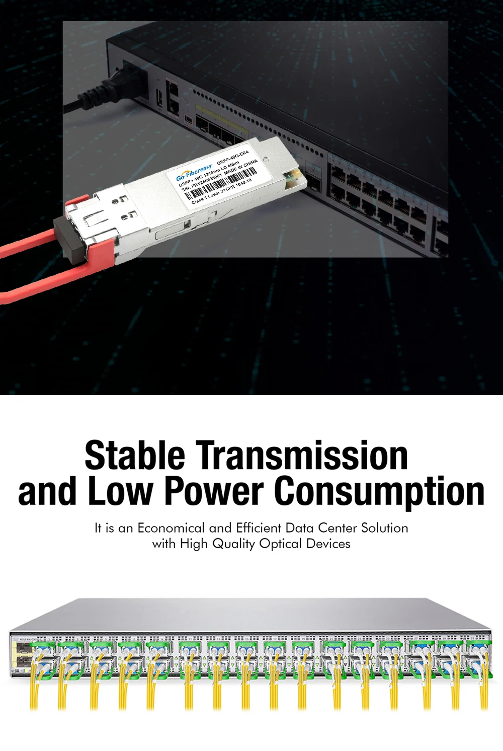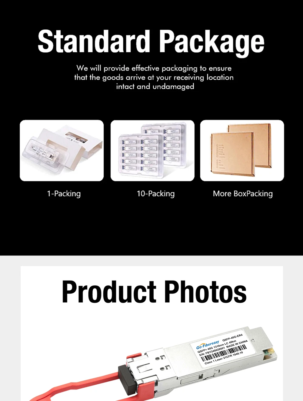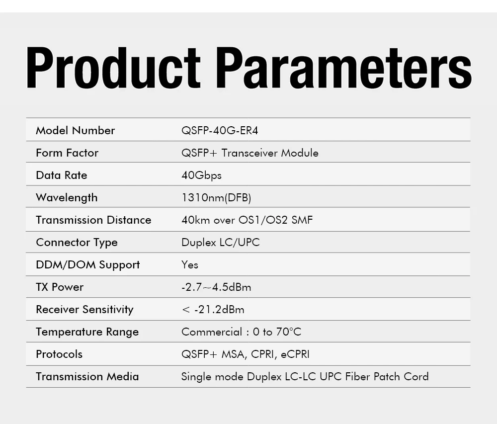 Módulo de fibra óptica QSFP 40GbMódulo transceptor QSFP+ con conector de fibra dúplex LC/UPC de 40GBASE-ER4 1310nm y 40km