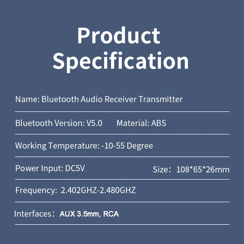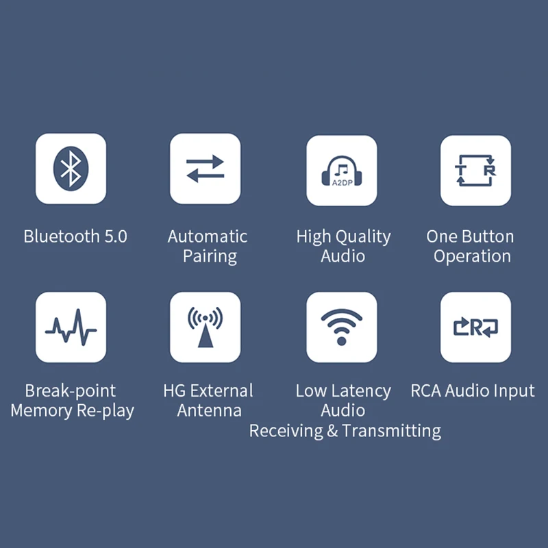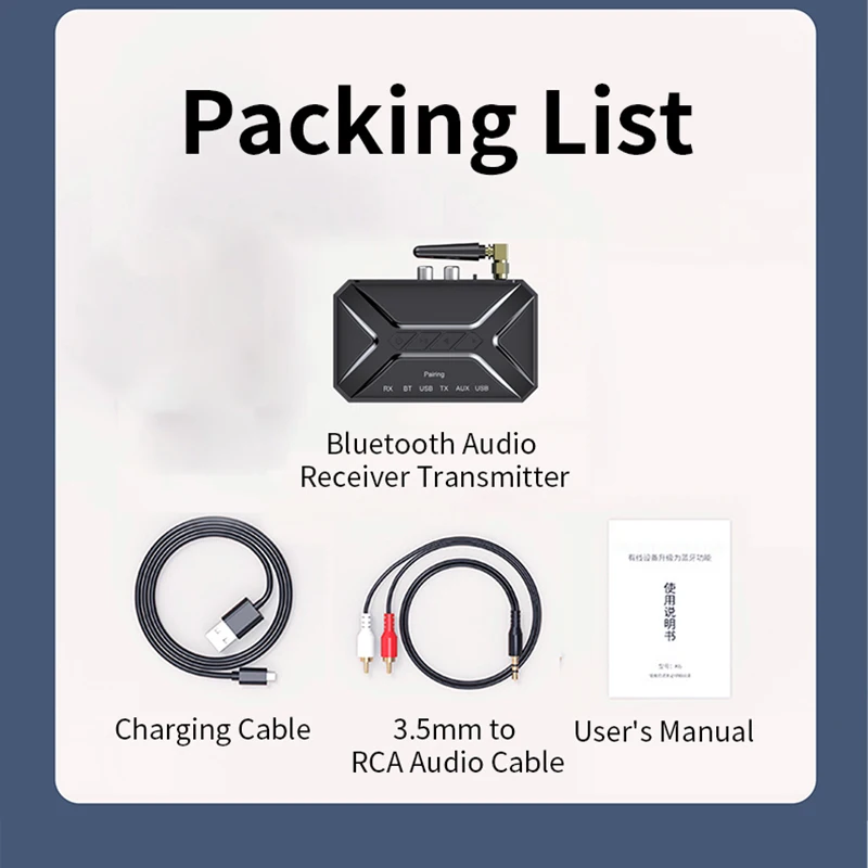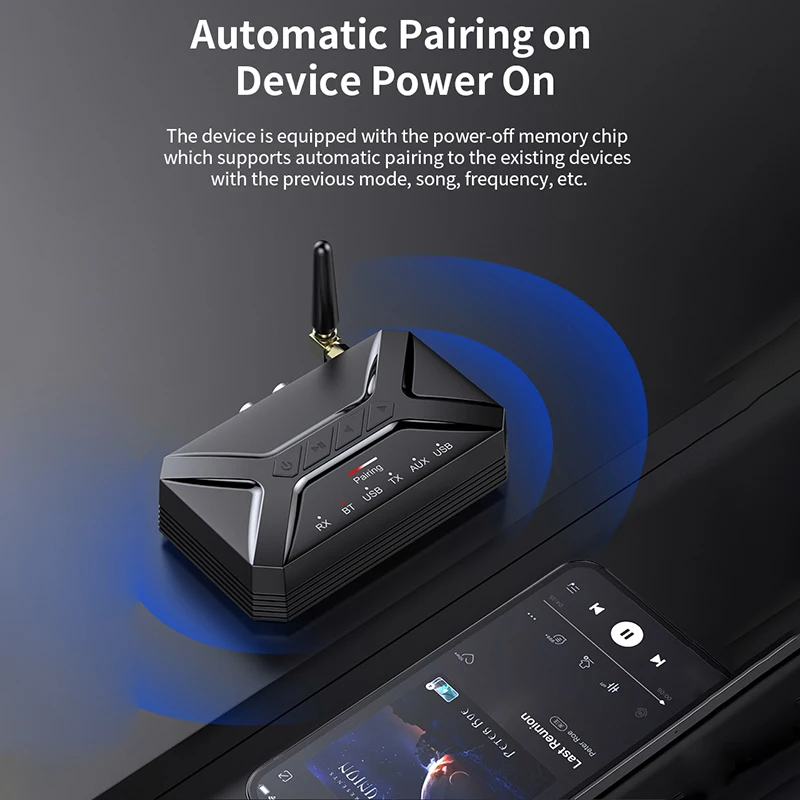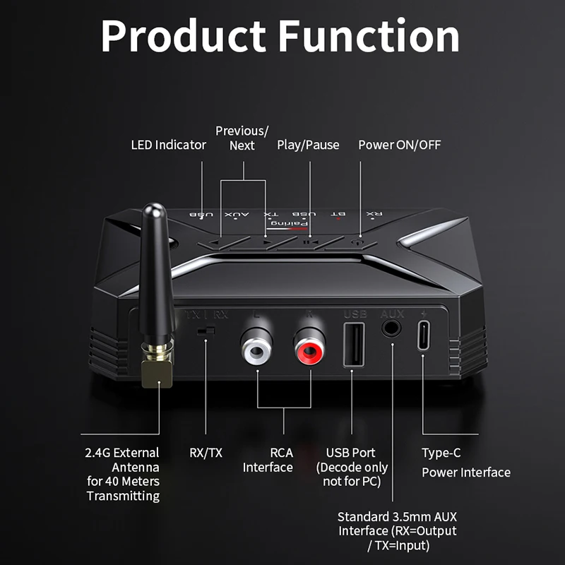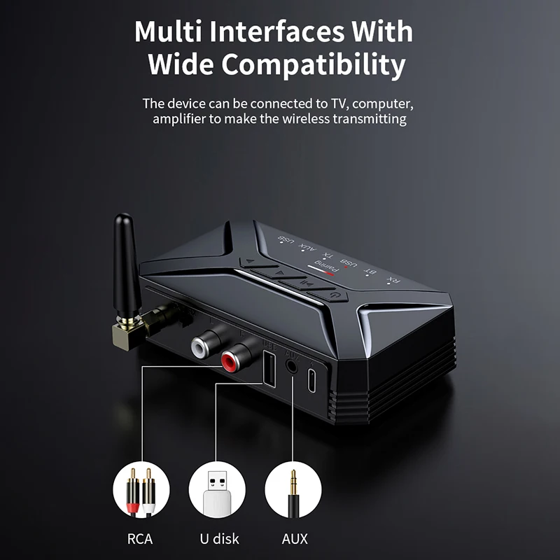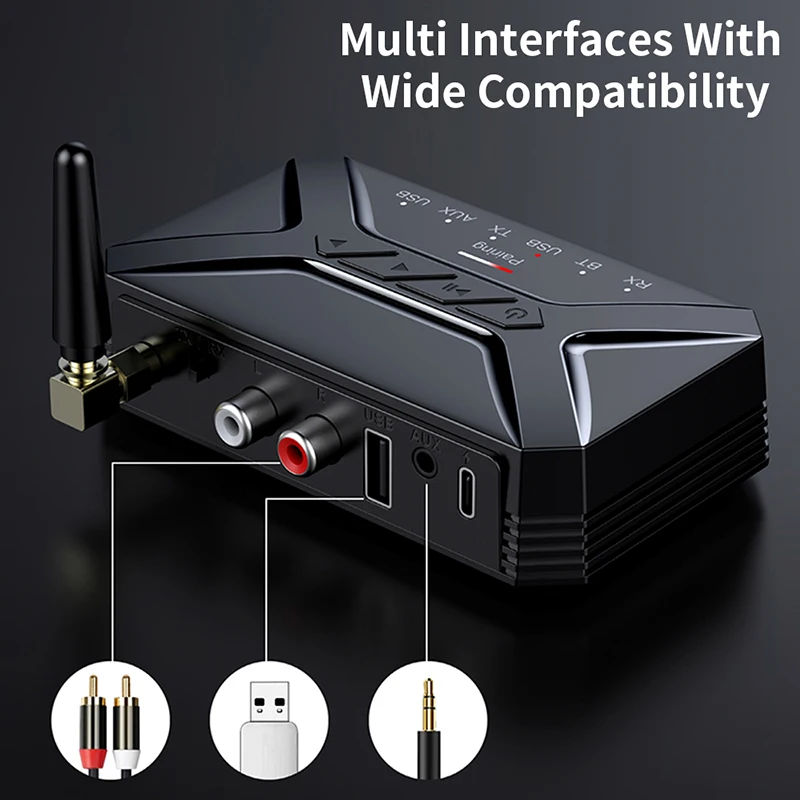 40M de larga distancia compatible con Bluetooth versión de transmisión 5.0 receptor transmisor 3 en 1 reproducción de Audio múltiples interfaces AUX RCA