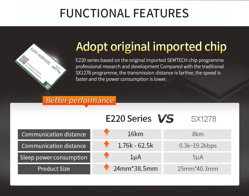 433/470MHz LLCC68 SPI LoRa módulo de espectro extendido 33dBm 2W COJXU E220-400M33S 16km agujero de sello PA LNA RF SMD módulo