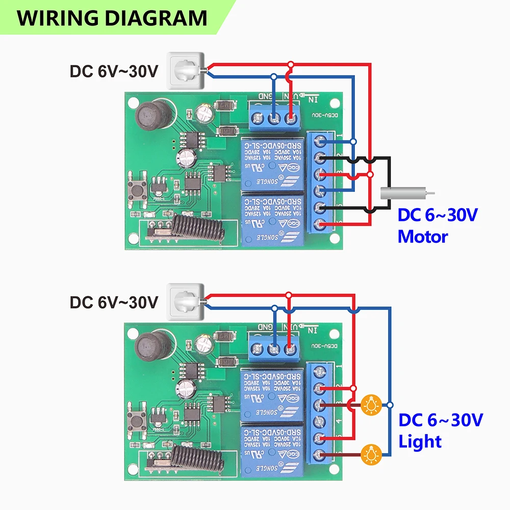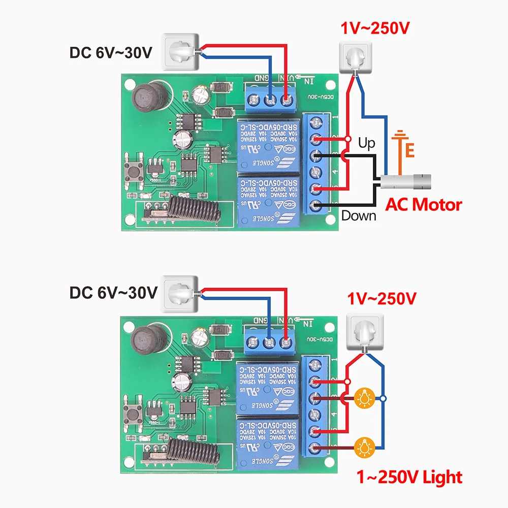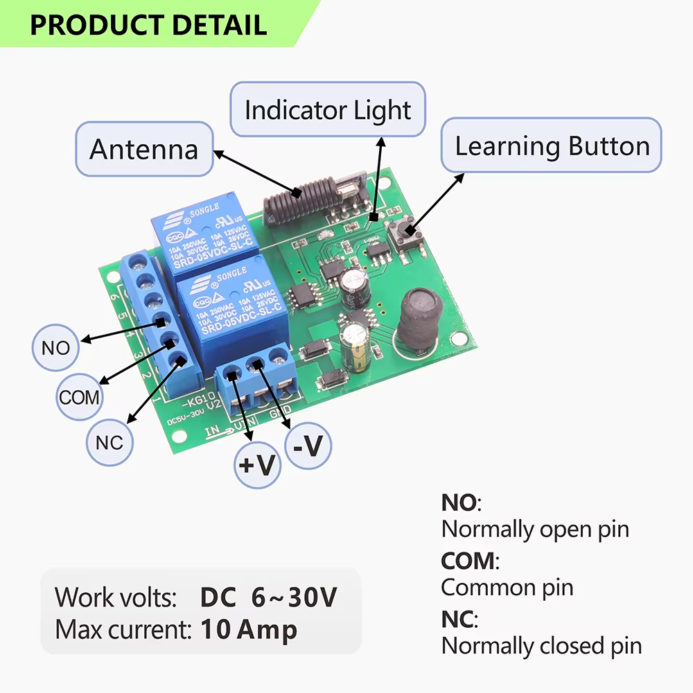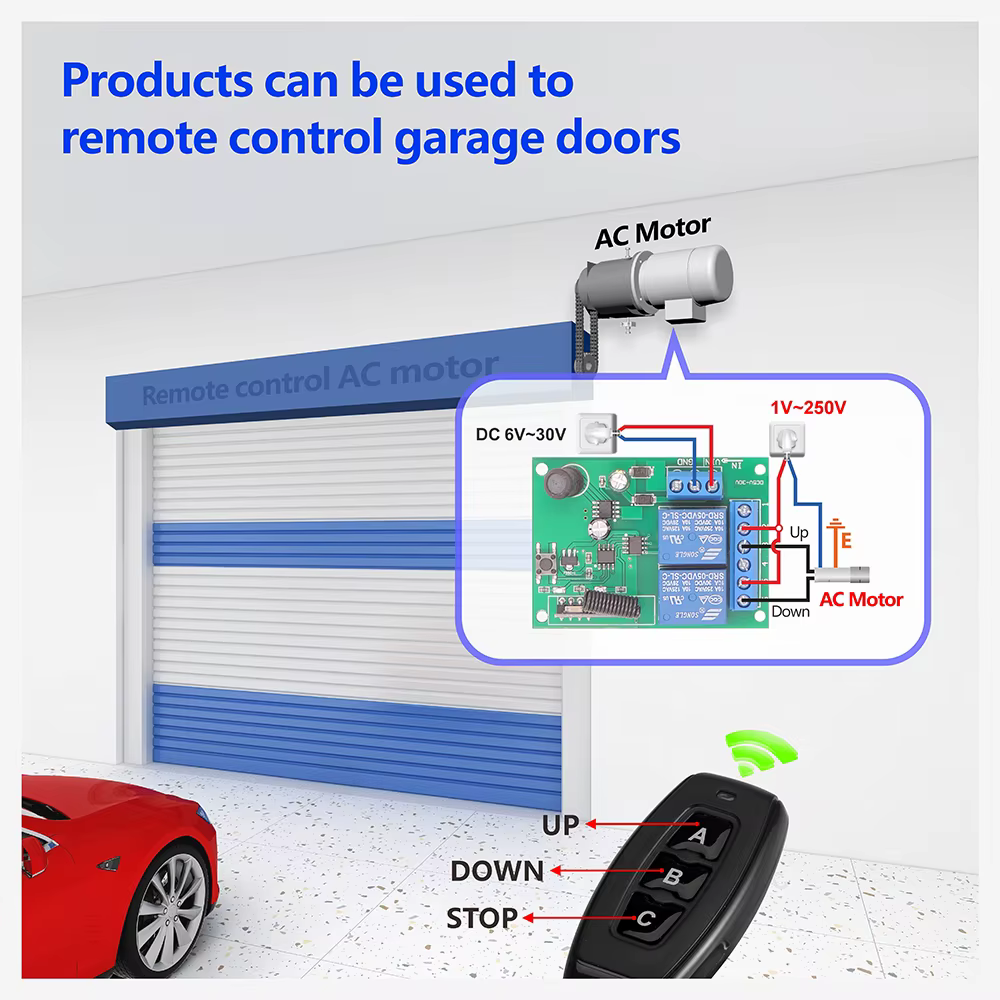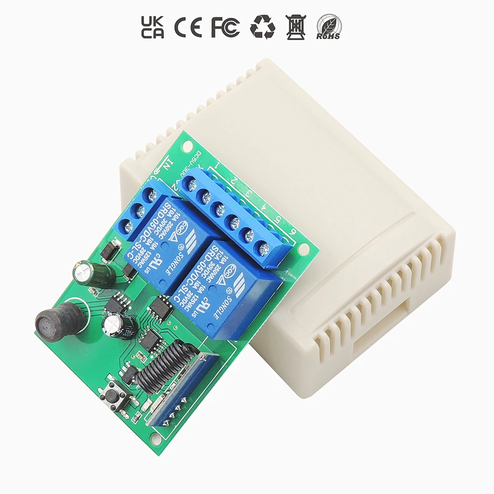 La señal es estable y puede atravesar paredes, y el emparejamiento es flexible.La distancia del mando a distancia puede alcanzar los 50 metros (en un área abierta).Un receptor se puede emparejar con hasta 25 controles remotos.