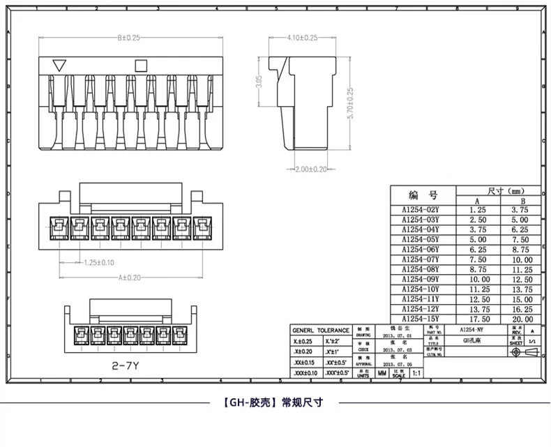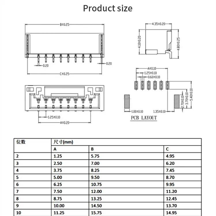 Paso del conector GH1.25 1.25 mm