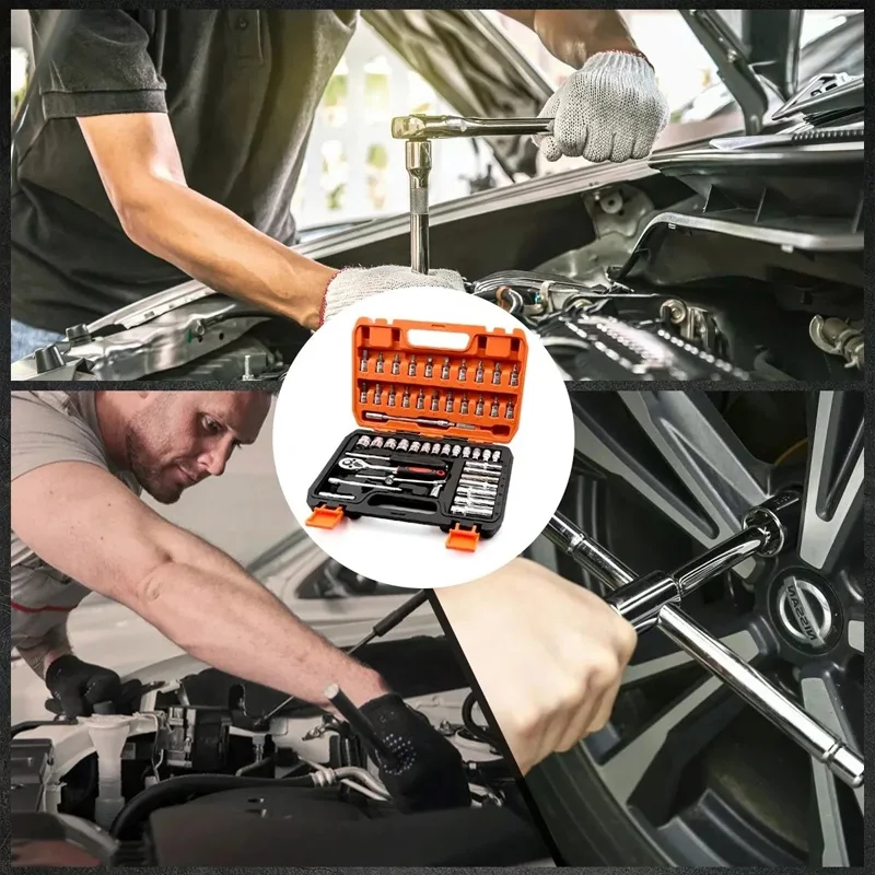 Comprar 46/53 unid/set 1/4 pulgadas nuevo Kit de herramientas de reparación de automóviles juego de enchufes herramienta de reparación de automóviles llave dinamométrica de trinquete Combo juego de herramientas de reparación de automóviles