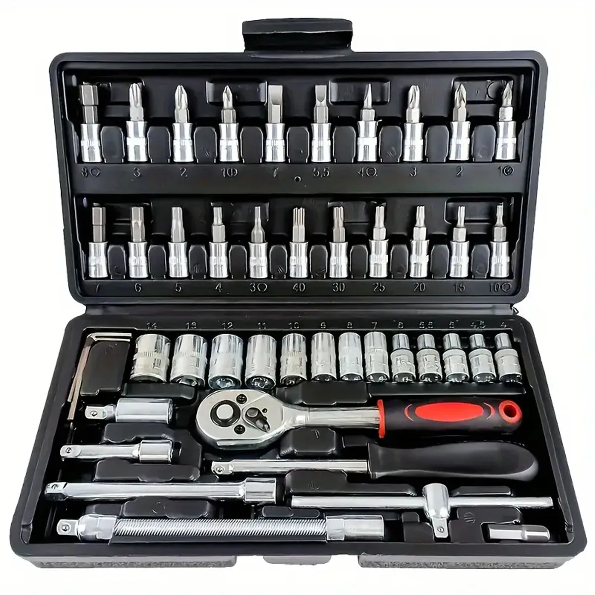 46/53 piezas/juego 1/4-pulgadas nuevo Kit de herramientas de reparación de automóviles juego de enchufes herramienta de reparación de automóviles combinación de llave dinamométrica de trinquete conjunto de herramientas de reparación de automóviles