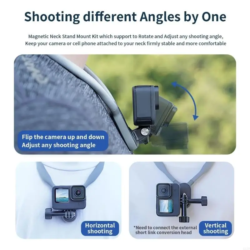 Wide compatibility and applications: The neck stand is compatible for Action 5 professional, for GO 3S sports cameras.