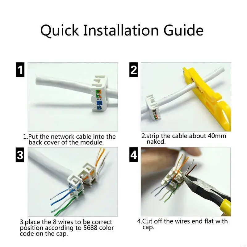 Adhesivos de código de color de cableado 568A y 568B en las tapas y el cuerpo del terminal Fácil instalación