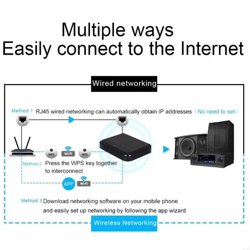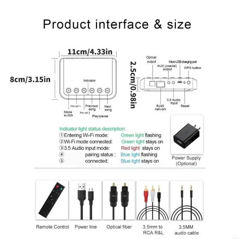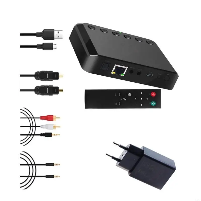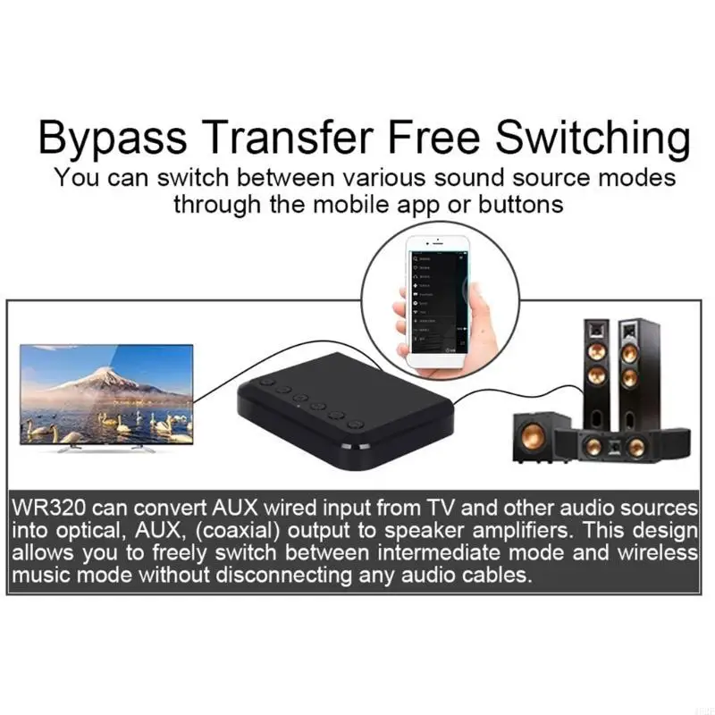 Este receptor cuenta con salidas versátiles que incluyen coaxiales digitales, ópticas y de 3,5 mm, junto con controles remotos 2.4G fáciles de usar para reproducir música sin problemas sin necesidad de su teléfono.