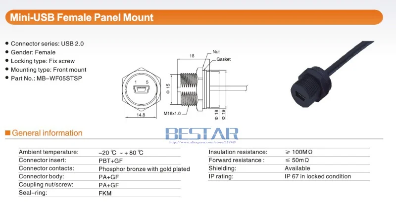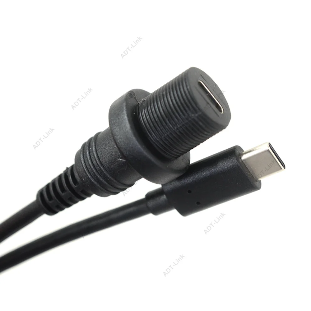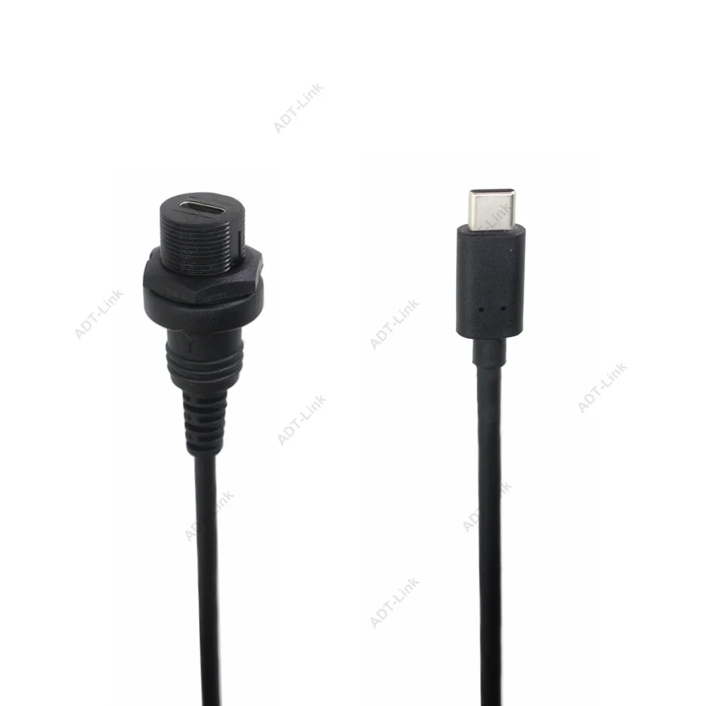 Comprar 480Mbps USB 2,0 tipo C IP67 Cable impermeable USB3.1 tipo c macho a hembra AUX extensión de montaje en Panel empotrado cable a prueba de polvo 1m 3FT