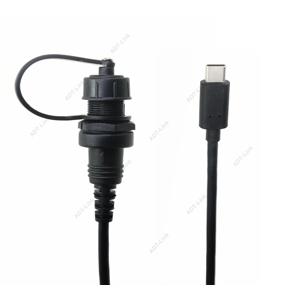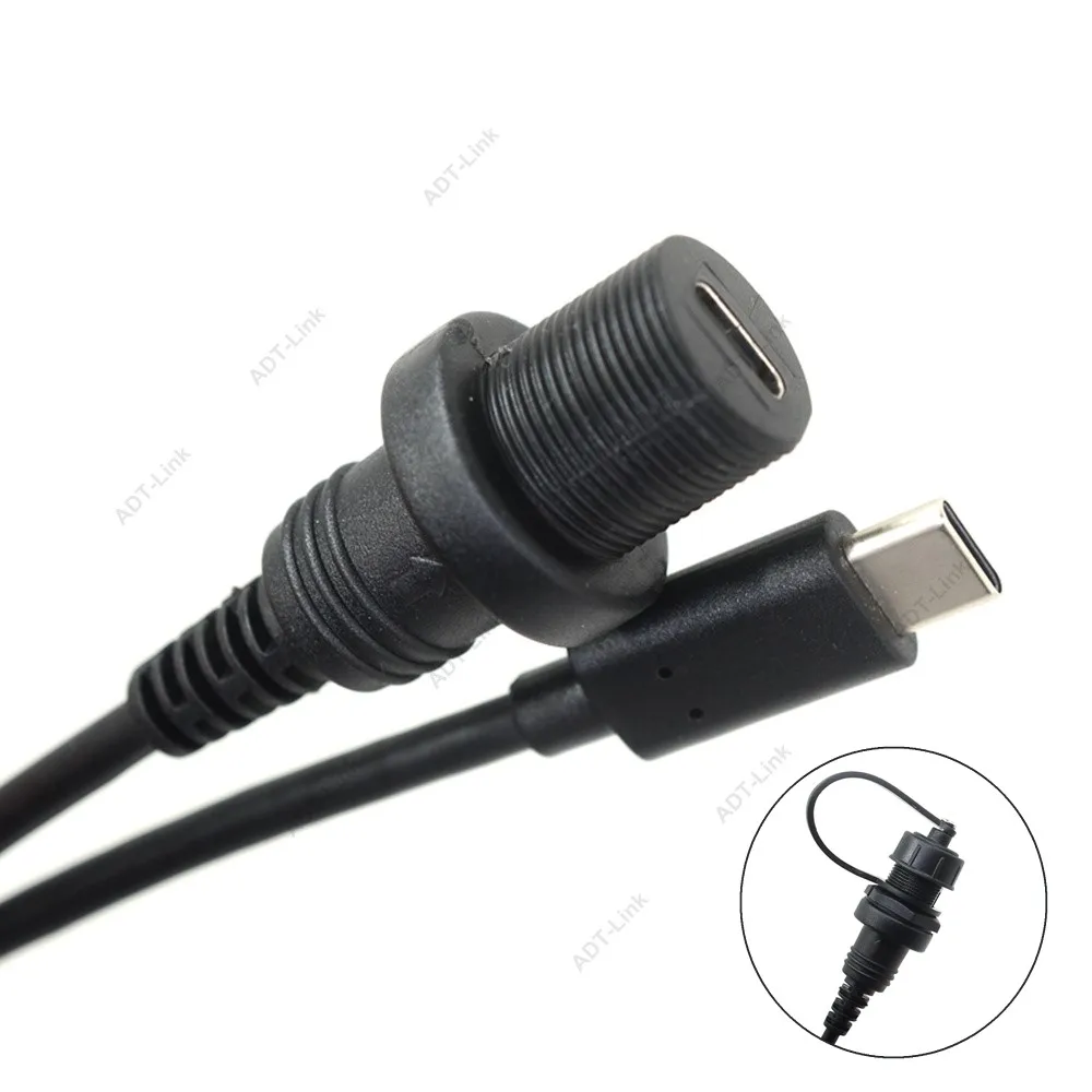 Comprar 480Mbps USB 2,0 tipo C IP67 Cable impermeable USB3.1 tipo c macho a hembra AUX extensión de montaje en Panel empotrado cable a prueba de polvo 1m 3FT
