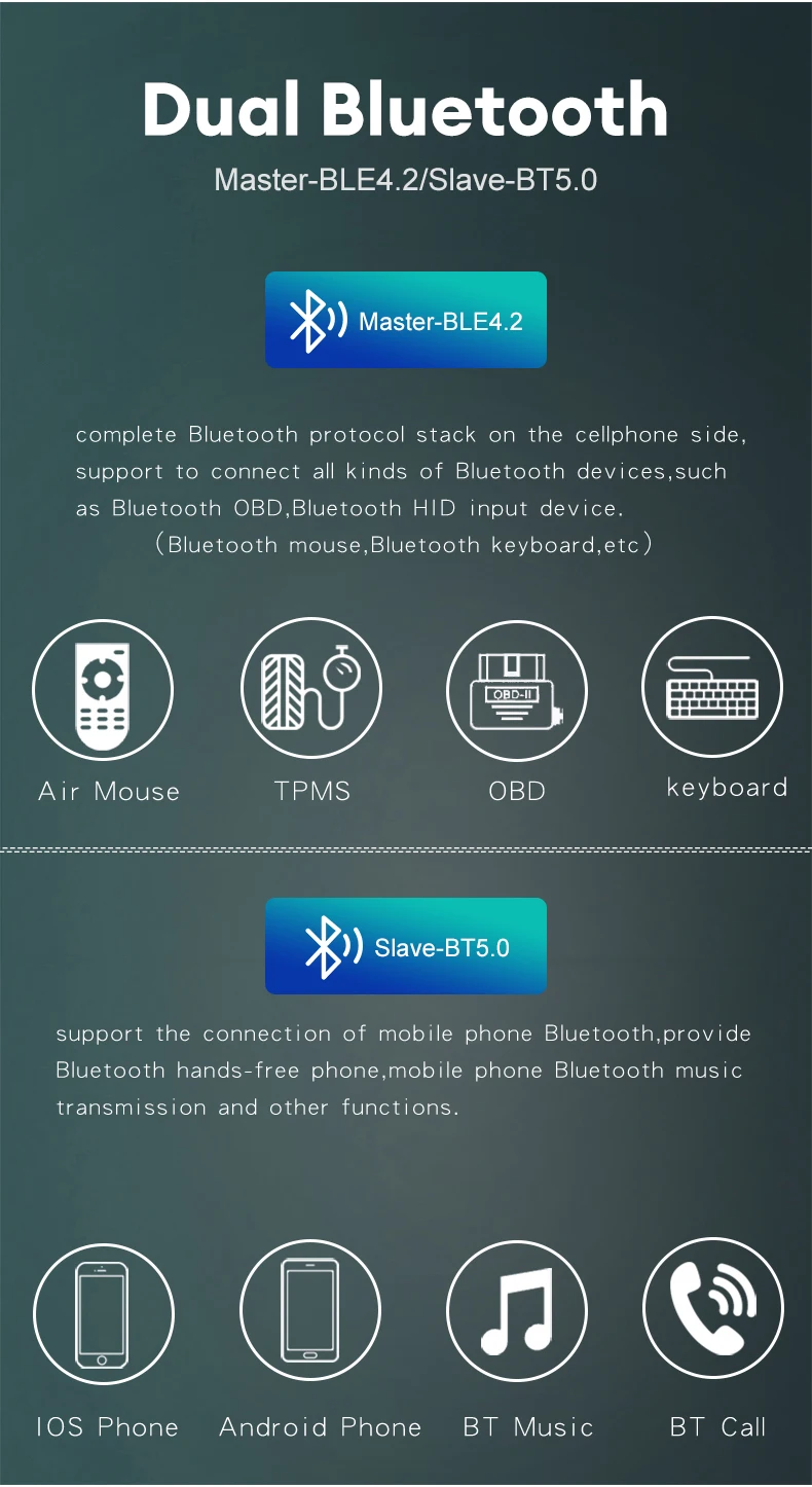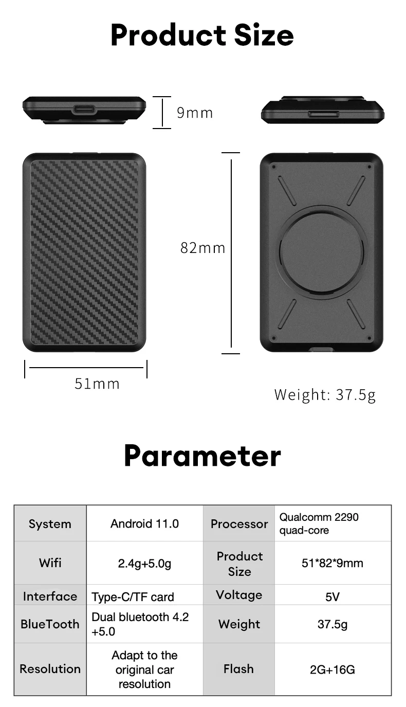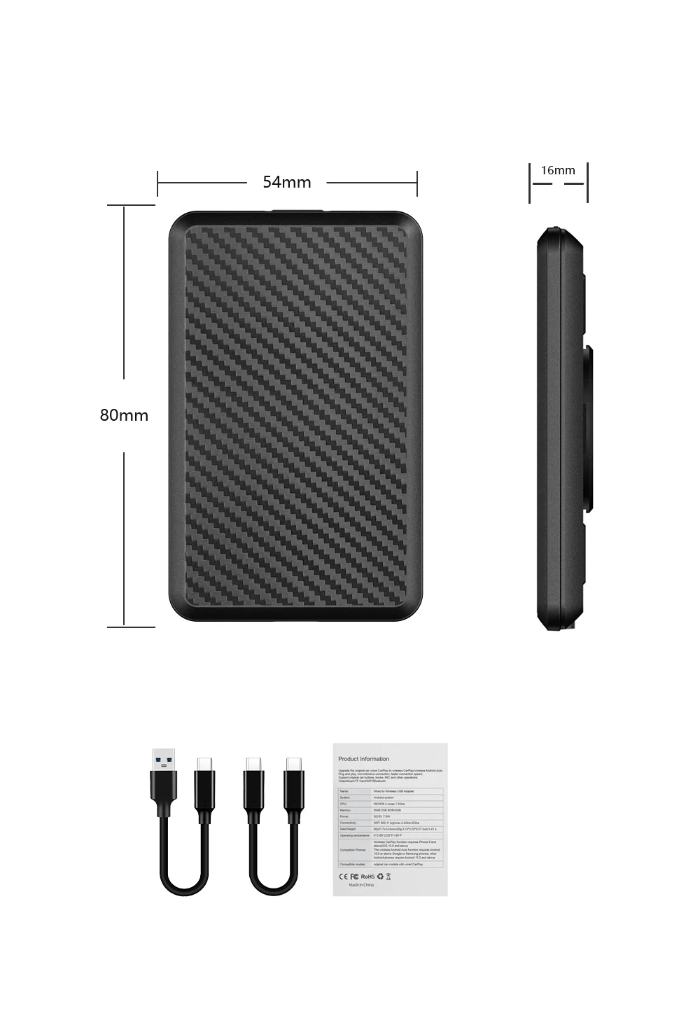 • Mini diseño de la dongle :El diseño compacto de la mini dongle hace que sea fácil de instalar y usar en cualquier coche.