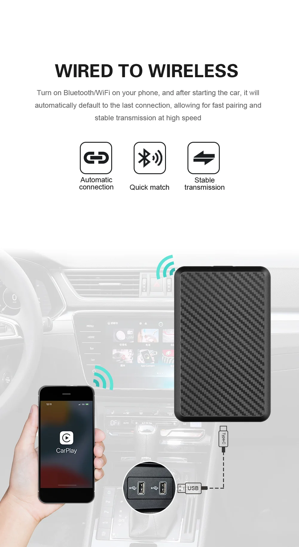 • Conectividad cableada a inalámbrica :Conéctese al sistema de audio de su automóvil de forma inalámbrica o mediante una conexión por cable para una conexión estable y confiable.