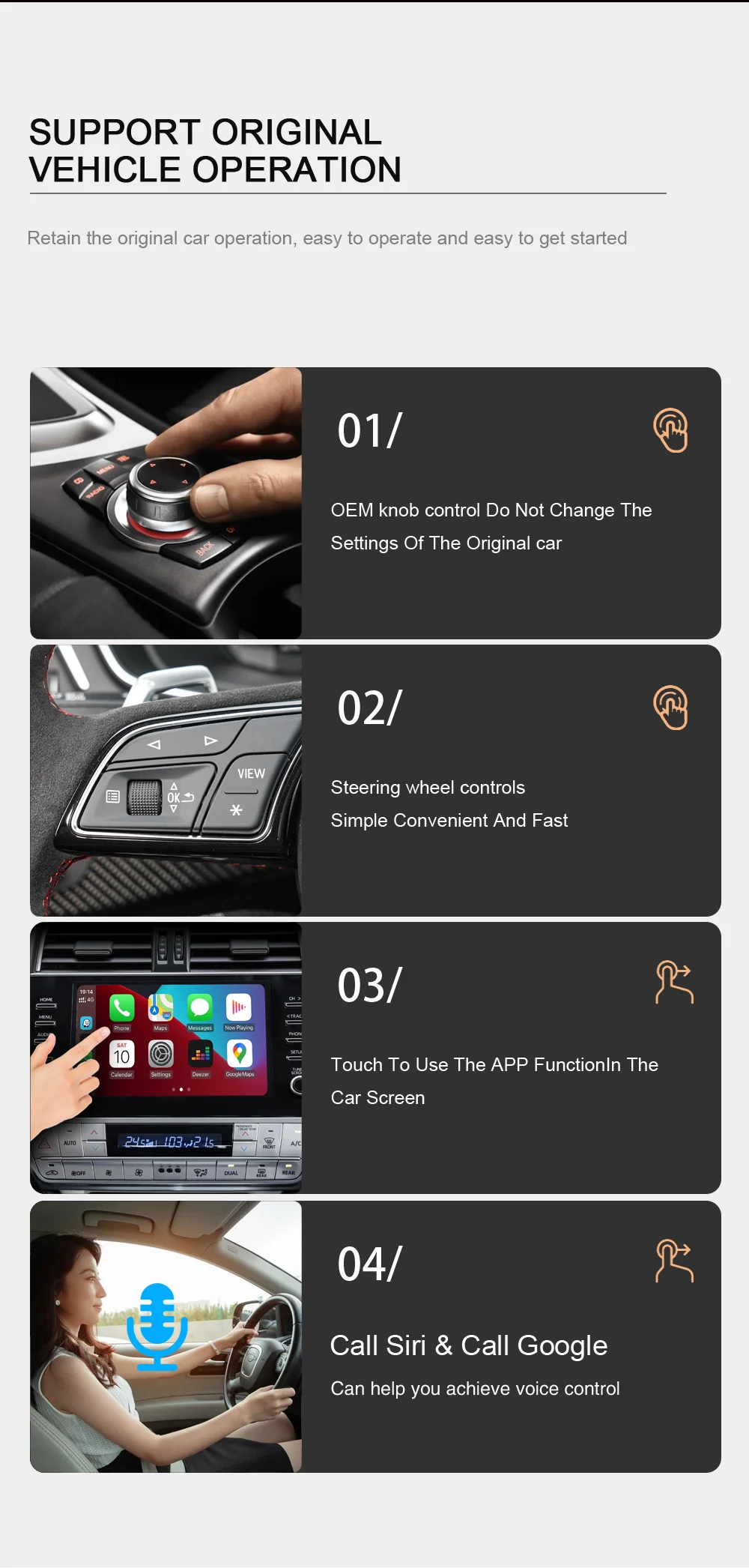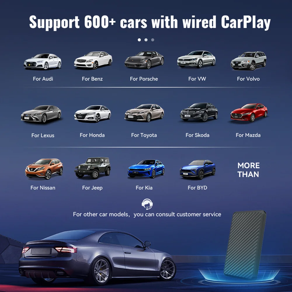 1. Antes de comprar, por favor, compruebe que su coche original tiene un cable incorporado para conectarse a carplay