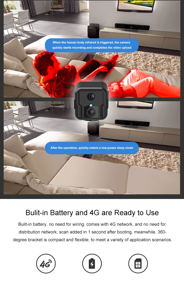 Comprar 4G Tarjeta SIM Mini camaras de vigilancia con wifi 1080P batería Audio bidireccional Monitor pequeño de bebé videovigilancia inalámbrica