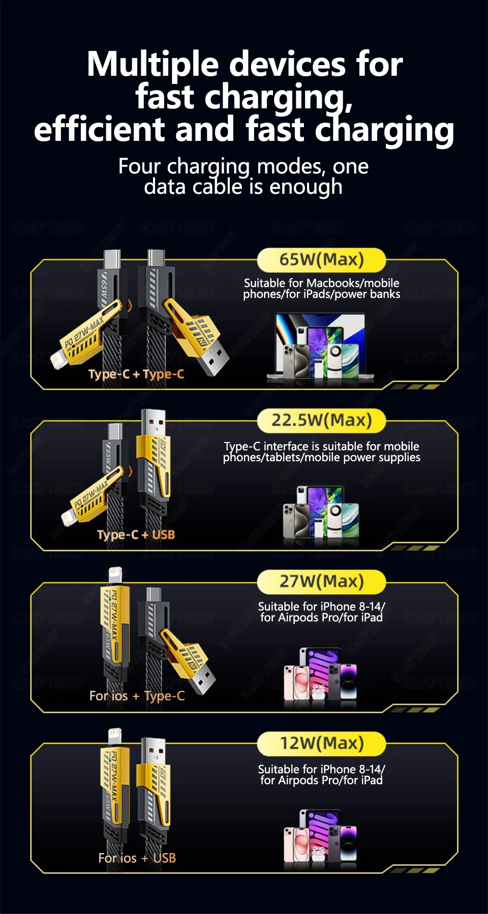 Comprar 4in1 PD 27W USB C Cable para Apple iPhone carga rápida tipo C Cable para Samsung Xiaomi Redmi POCO 65W carga rápida línea de fecha USB