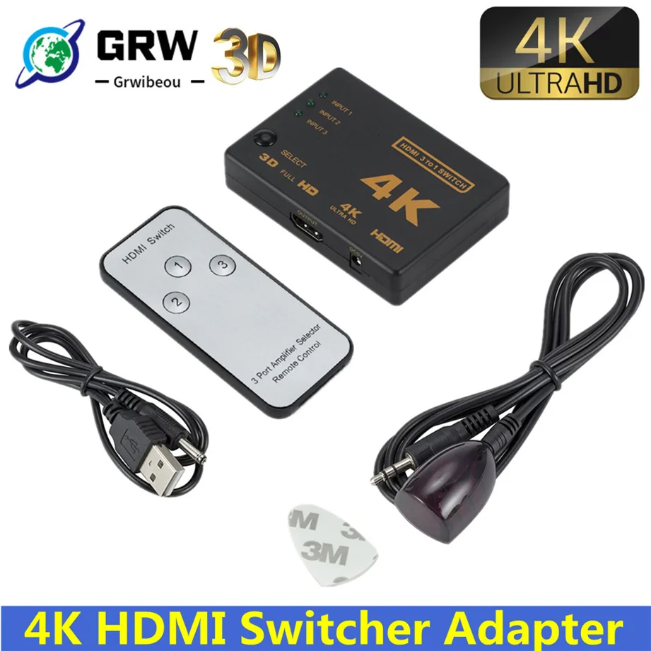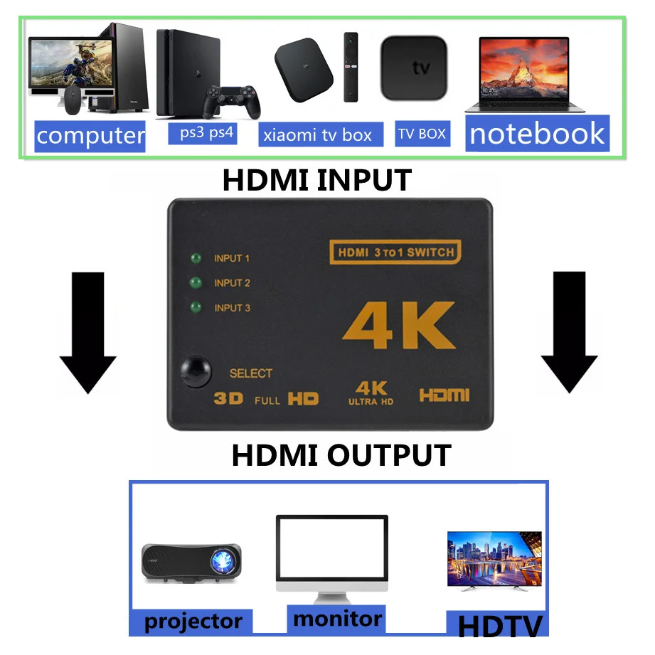 Comprar 4K * 2K 3D Mini 3 puertos compatible con HDMI 1,4b 4K conmutador divisor 1080P 3 en 1 salida puerto Hub para DVD HDTV Xbox PS3 PS4