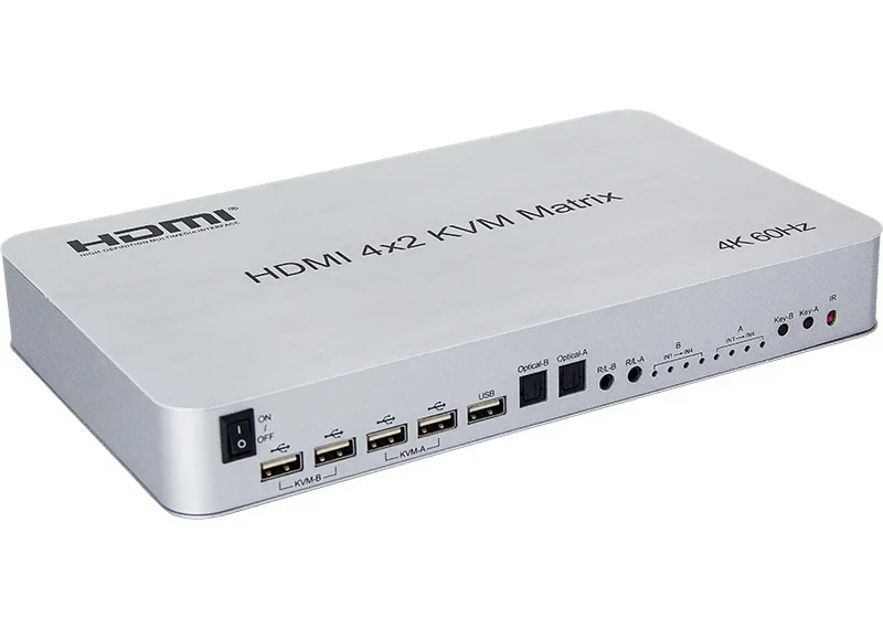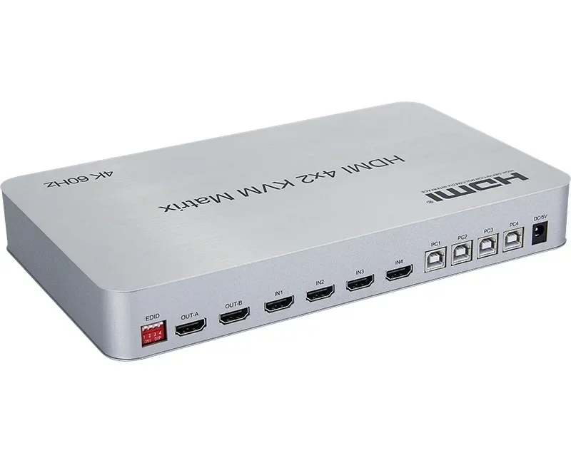 Esta matriz KVM HDMI 4x2 puede conectar 4 fuentes de señal HD a 2 terminales de pantalla HD con fibra óptica o Salida de auriculares estéreo.Dos juegos de mouse y teclado pueden controlar dispositivos en 4 puertos de PC a voluntad; La matriz permite cambiar o dividir fácilmente cuatro dispositivos HDMI en dos monitores compatibles con HDMI o proyectores.Y cualquier puerto de salida puede realizar una salida de audio independiente mediante fibra óptica o auriculares estéreo. Nuestros dispositivos ofrecen soluciones para problemas de ruido, espacio y seguridad, control de centros de datos, distribución de información, presentación en salas de conferencias y entornos de capacitación escolar y corporativa.