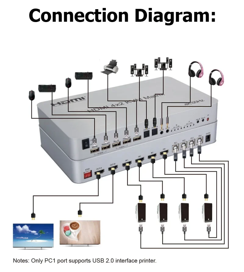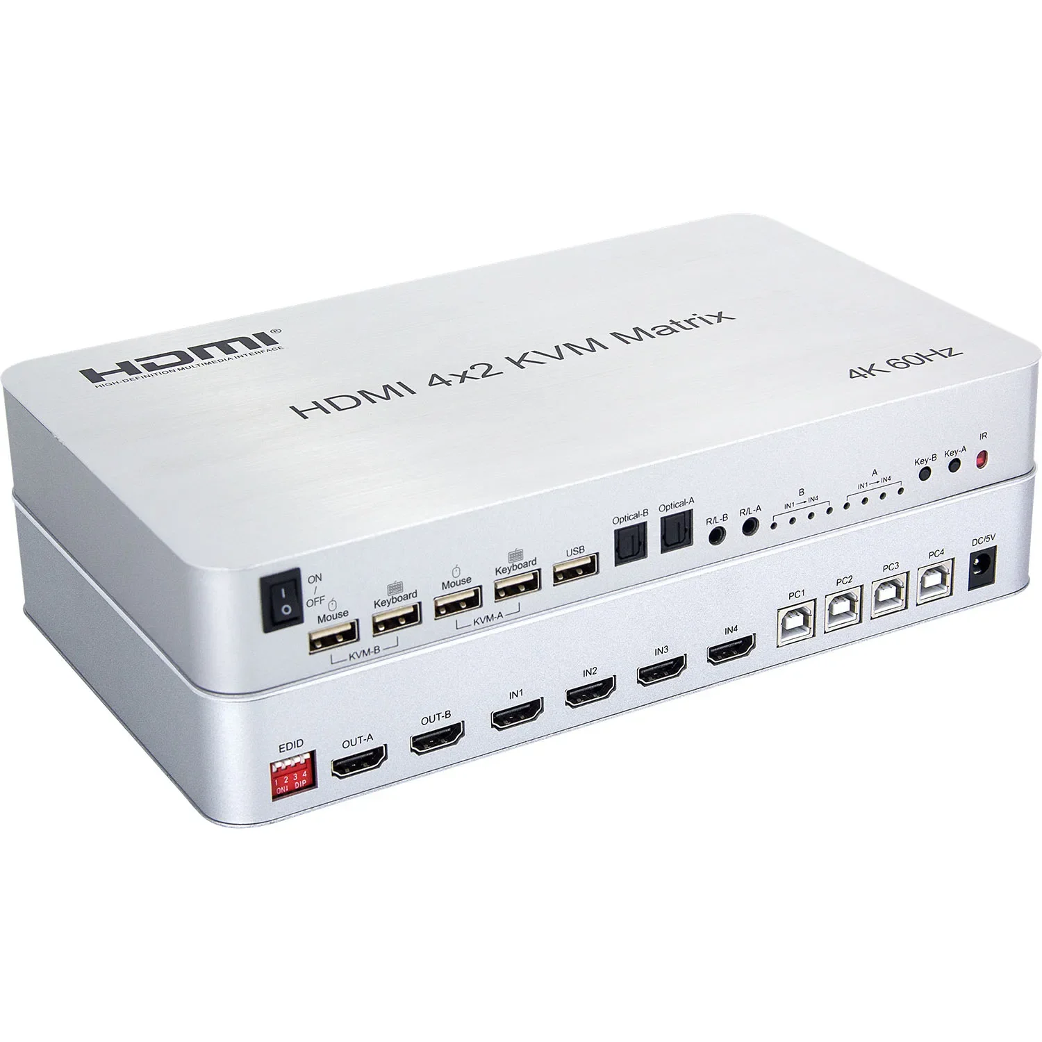 Comprar 4K 60Hz 4x2 HDMI KVM Matrix Video Switch Splitter 5 USB Soporte Teclado Ratón Control Laptop/U Flash Drive Impresora de disco USB