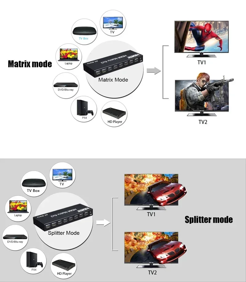 Publicamos una combinación de "4K 60Hz 6x2" y "4K 30Hz 4x2", con diferentes opciones para diferentes productos. Si elige la opción 4x2, le enviaremos una matriz 4x2. Si eliges la opción 6x2, te enviaremos una matriz 6x2. Diferentes productos tienen diferentes precios. Por favor haga la compra correcta, ¡gracias!