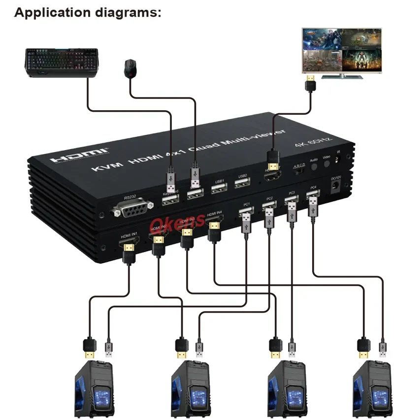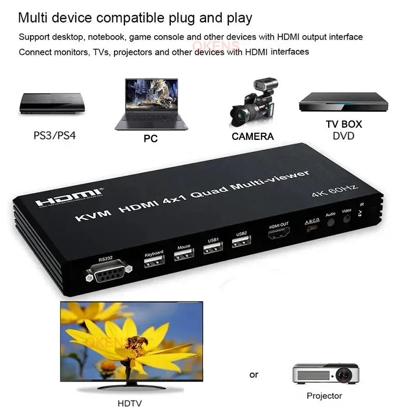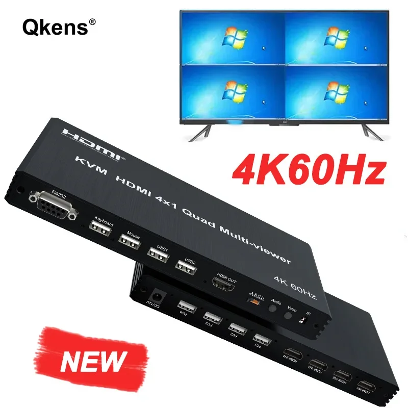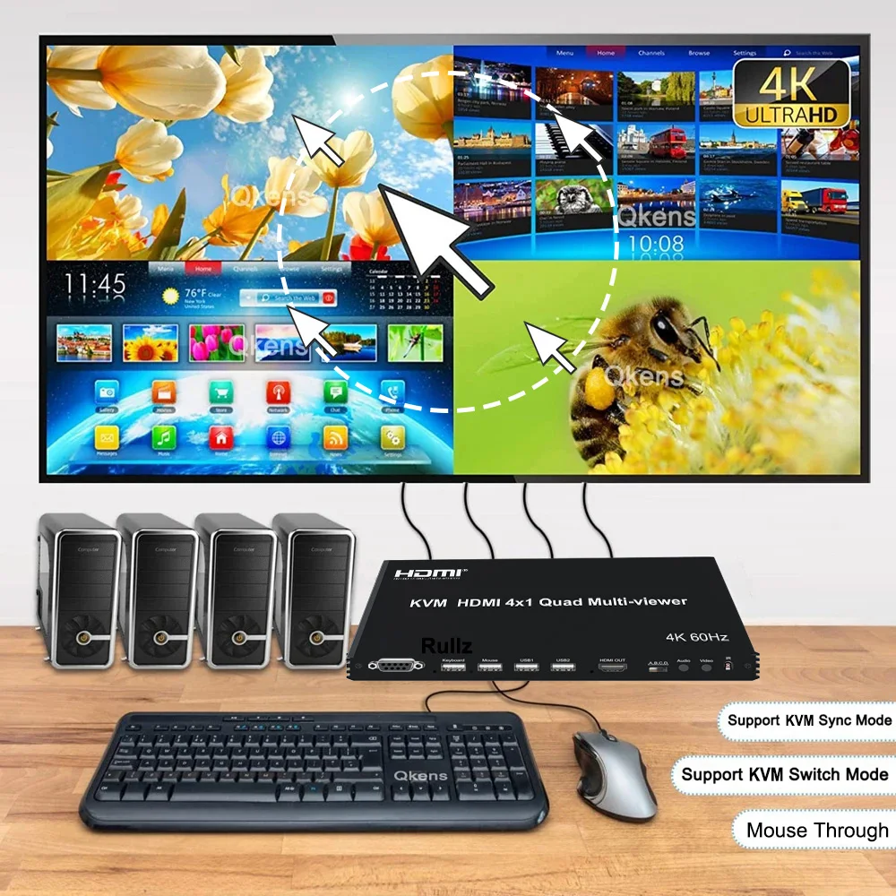 Comprar 4K 60Hz HDMI KVM multivisor 4x1 multivisor pantalla cuádruple 4 en 1 salida conmutador de vídeo compatible con teclado, ratón a través de PC