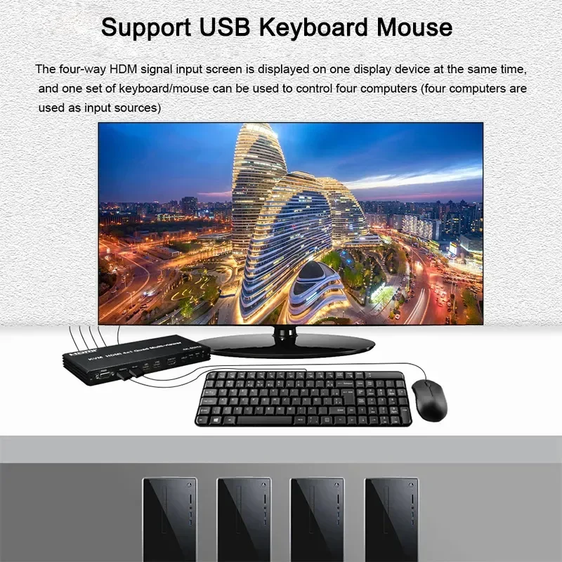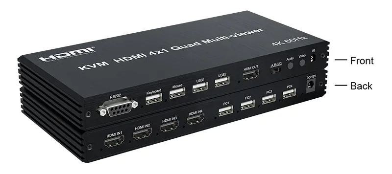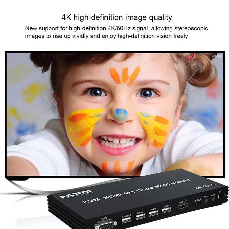 Visión múltiple cuádruple 4k60Hz KVM HDMI 4x1 x1