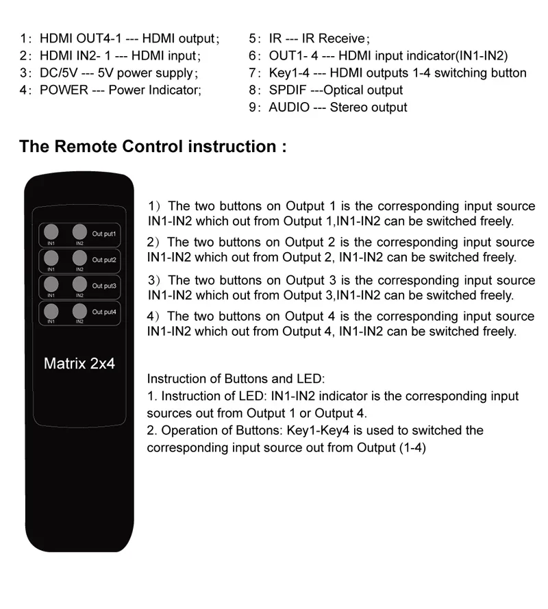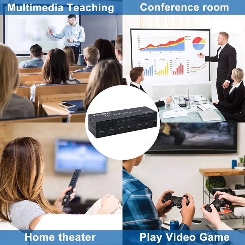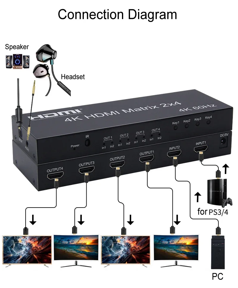 4K 60Hz HDMI Matrix 2x4 2 en 4 salida HDMI divisor de interruptor con Extractor de Audio 1080p convertidor de vídeo 2 3 4 pantalla de Monitor