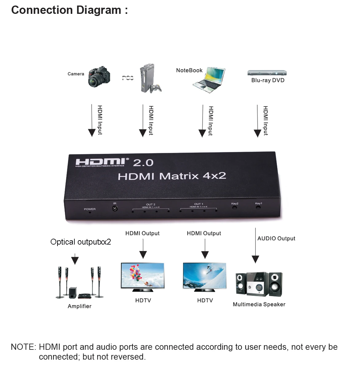 Comprar 4K 60Hz HDMI Matrix 2x4 2 en 4 salida HDMI interruptor divisor Extractor de Audio HDMI 2,0 4x2 Matrix 1080p para PS3/4 DVD PC a Monitor de TV