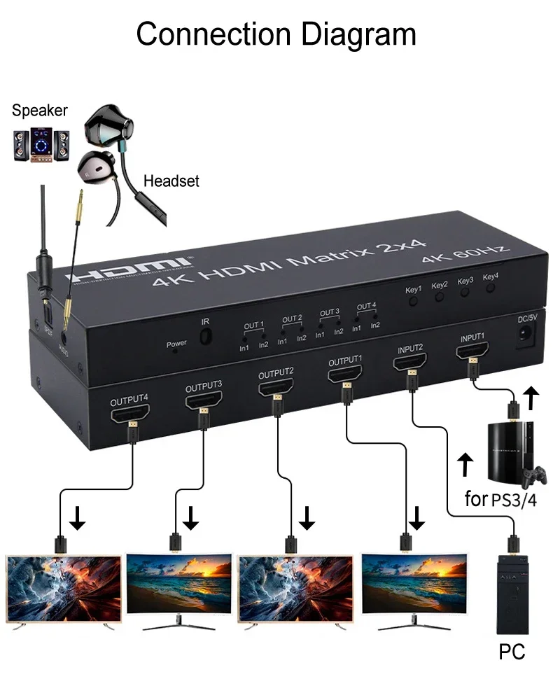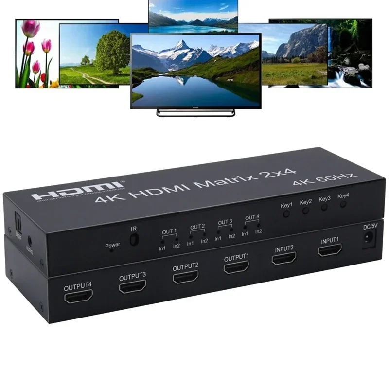 Comprar 4K 60Hz HDMI Matrix 2x4 2 en 4 salida HDMI interruptor divisor Extractor de Audio HDMI 2,0 4x2 Matrix 1080p para PS3/4 DVD PC a Monitor de TV