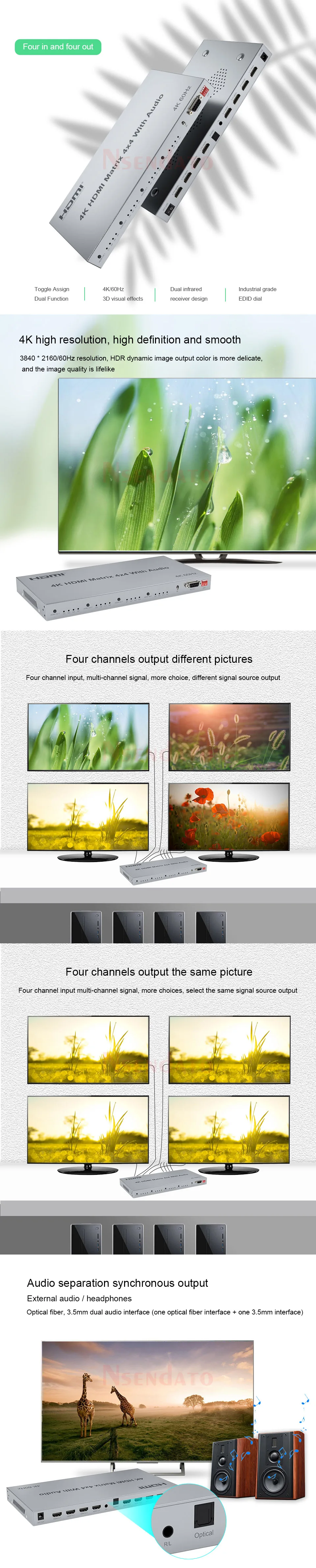 4K 60Hz HDMI cierto matriz 4x4 en 4 matriz HDMI Switch Splitter convertidor de Audio RS232 EDID óptico de PC a TV Monitor